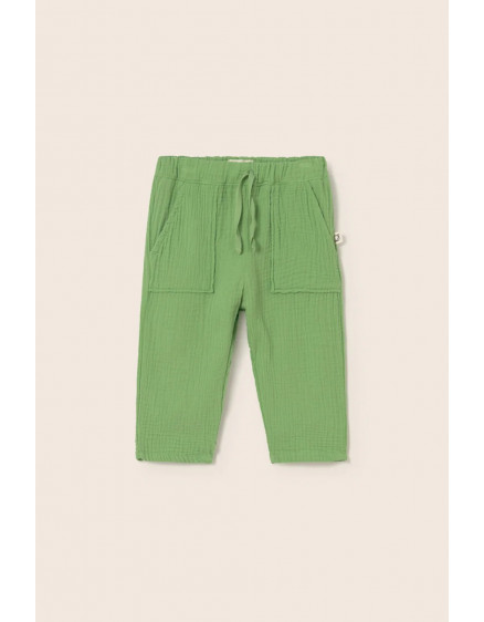 Штани для немовлят та малюків з бавовняної тканини. Мають еластичний пояс з декоративною зав'язкою, тканинну підкладку "Cozmo" всередині пояса та бічні накладні кишені для комфортної посадки.