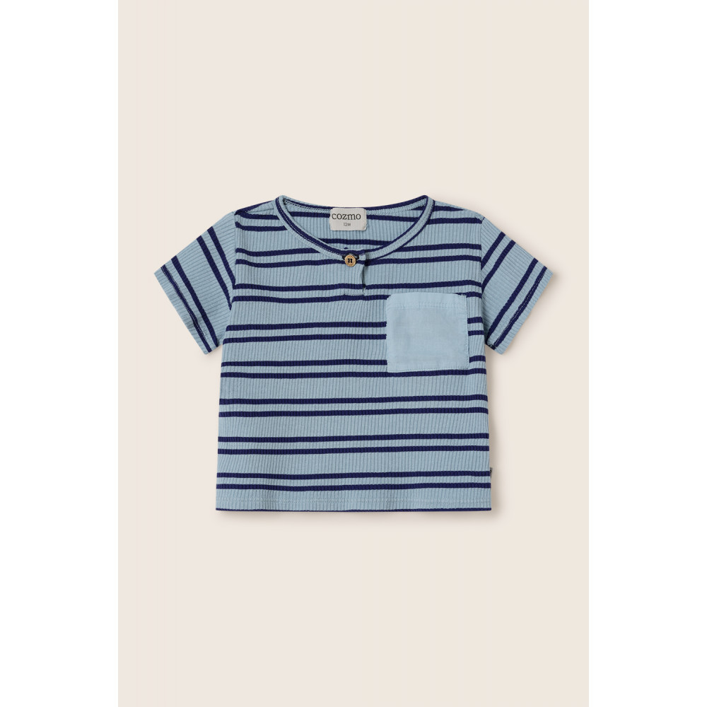 Смугаста футболка з комфортної, еластичної ребристої бавовни. Круглий виріз горловини з планкою на ґудзиках. Короткі рукави. Накладна кишеня на грудях з контрастної бавовняної вуалі.