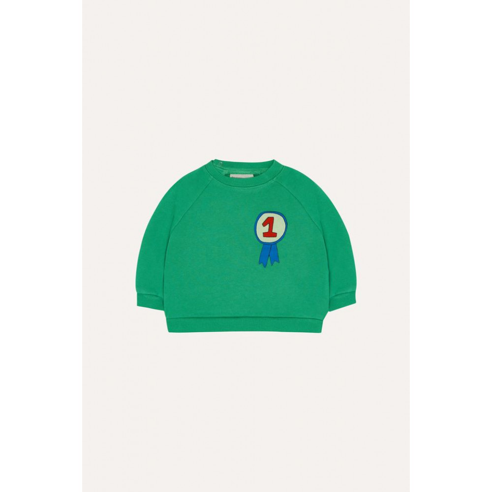 Светр із кумедним принтом у вигляді значка номер один. З оверсайз-кроєм та ребристими манжетами та коміром для більшого комфорту. Це дуже універсальний одяг, який доповнить будь-який літній образ.