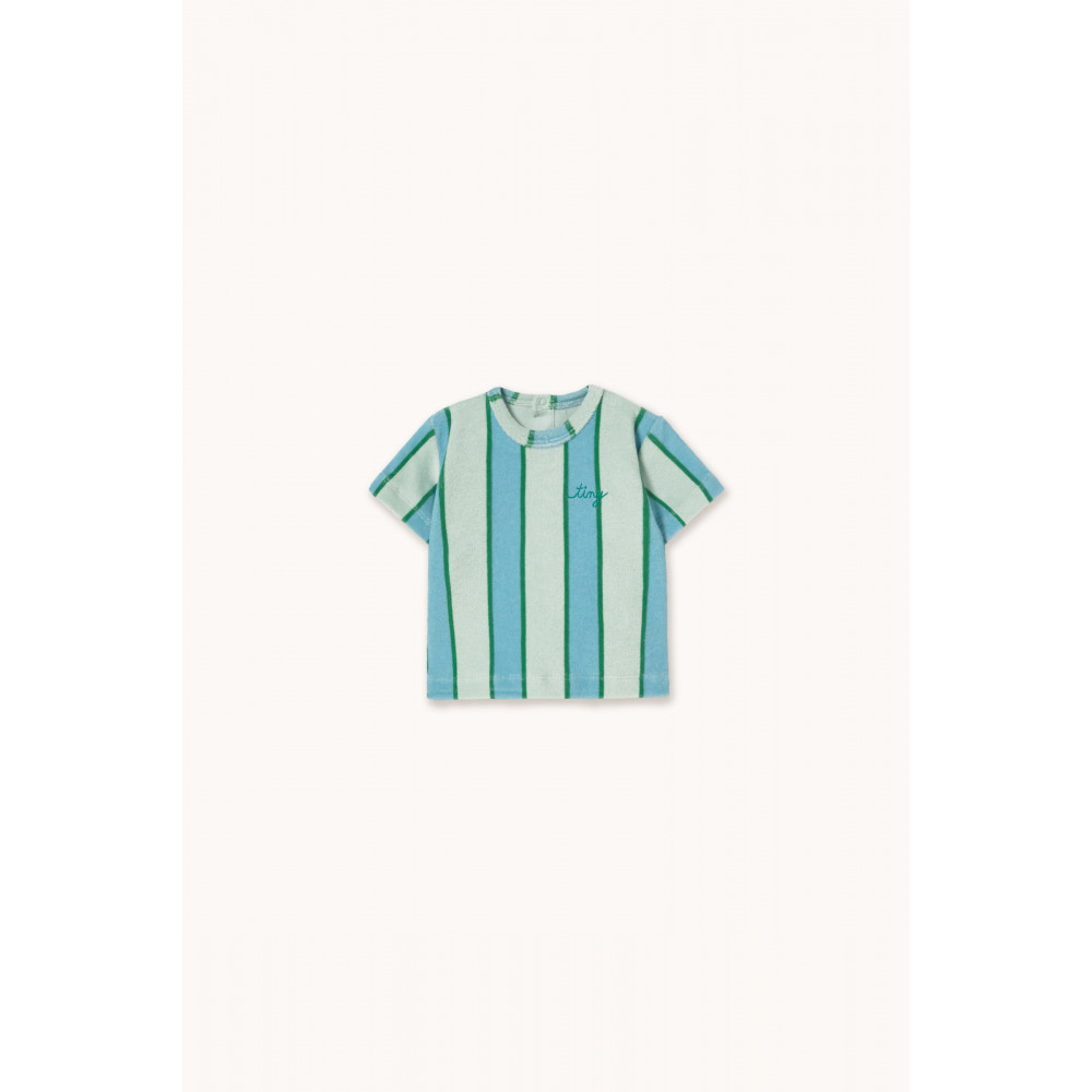 Ця футболка з ретро-смугастим принтом по всій поверхні додасть веселого шарму кожному дню. Виготовлена зі 100% органічної бавовни. Завдяки вільному крою, коротким рукавам і круглому вирізу горловини із застібкою-кнопкою, вона пропонує комфорт і стиль для будь-якої пригоди.