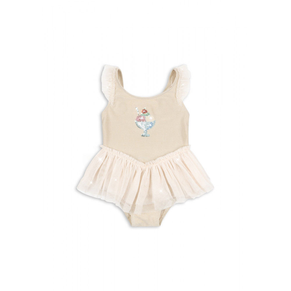 М'який купальник з мерехтливої тканини з тюлевими деталями. Купальник Amandine, створений для веселих днів на пляжі чи біля басейну, виготовлений з швидковисихаючого матеріалу, який є легким і зручним у носінні.