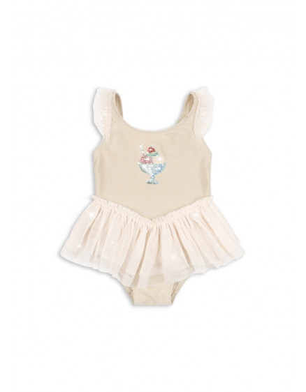 М'який купальник з мерехтливої тканини з тюлевими деталями. Купальник Amandine, створений для веселих днів на пляжі чи біля басейну, виготовлений з швидковисихаючого матеріалу, який є легким і зручним у носінні.
