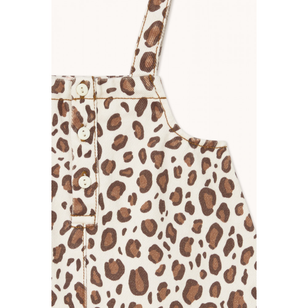 Цей короткий дитячий комбінезон з тваринним принтом виготовлений зі 100% бавовни, що забезпечує комфортну та свіжу посадку. Без рукавів, на бретельках та застібці на ґудзики спереду, його легко одягати, а нижні кнопки спрощують зміну підгузків. Ідеально підходить для поєднання з футболкою або окремо, він додає грайливого та стильного штриха до будь-якого повсякденного образу.