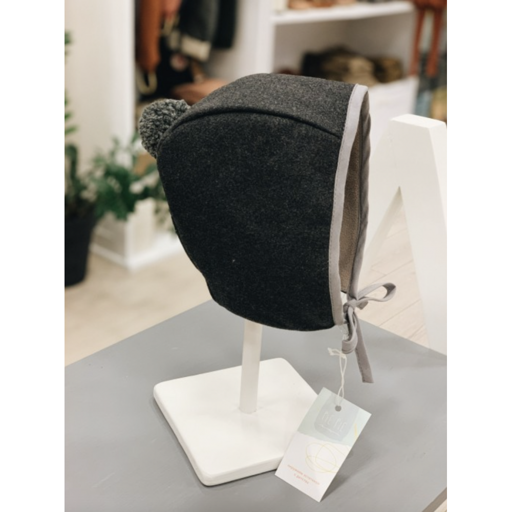 Шапочка з вельвету на зав'язках з помпоном на флісовій підкладці.