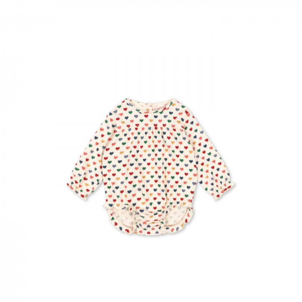 Комбінезон з довгими рукавами та кнопками на промежині для зручності одягання.