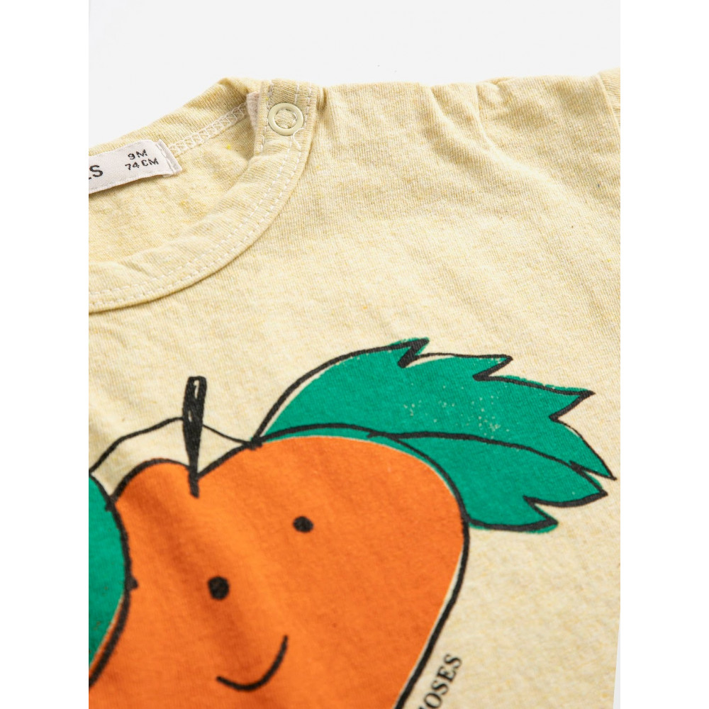 Жовта футболка. Короткі рукави, спущені плечі, застібка на кнопках, вільний крій та круглий виріз горловини. Виготовлено в Іспанії.