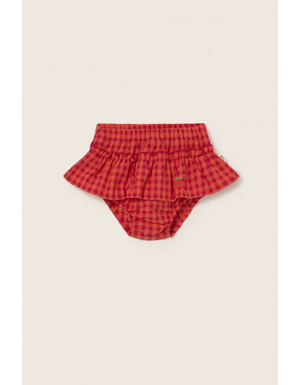 М'які бавовняні панталони зі свіжим та яскравим візерунком у клітинку. Еластичний пояс та отвори для штанин. Верхня спідниця з рюшами та вишитим мотивом яблука.