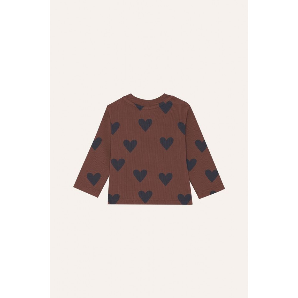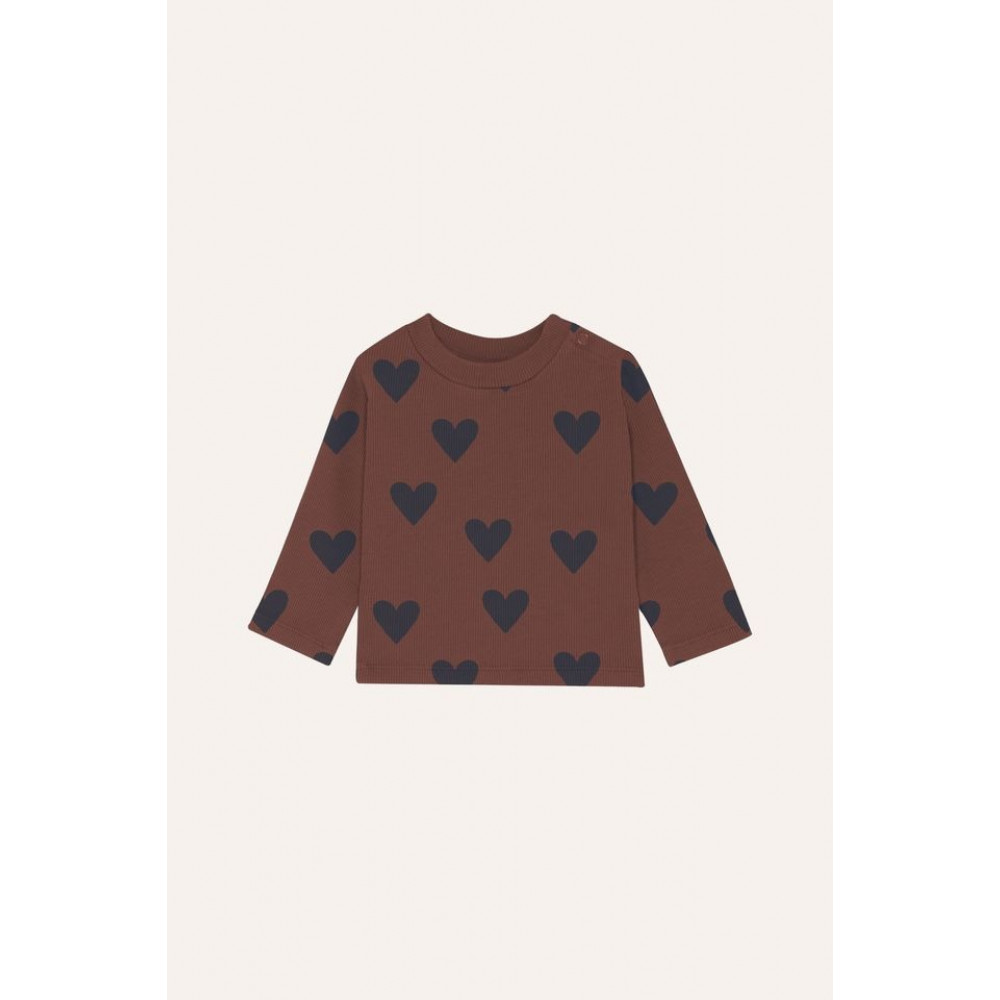 Футболка з м'якої ребристої тканини з принтом чорних сердечок по всій довжині. Заокруглений комір та довгі рукави ідеально підходять для носіння протягом усієї зими. Ви можете створити цілісний образ з легінсами «Hearts Brown Baby Leggings» або поєднати їх з будь-яким одягом на ваш вибір! Футболка з довгими рукавами, що приталена до тіла. Заокруглений комір з ребристою тканиною для додаткового комфорту. Застібки на кнопках на плечі. Виготовлено в Португалії.