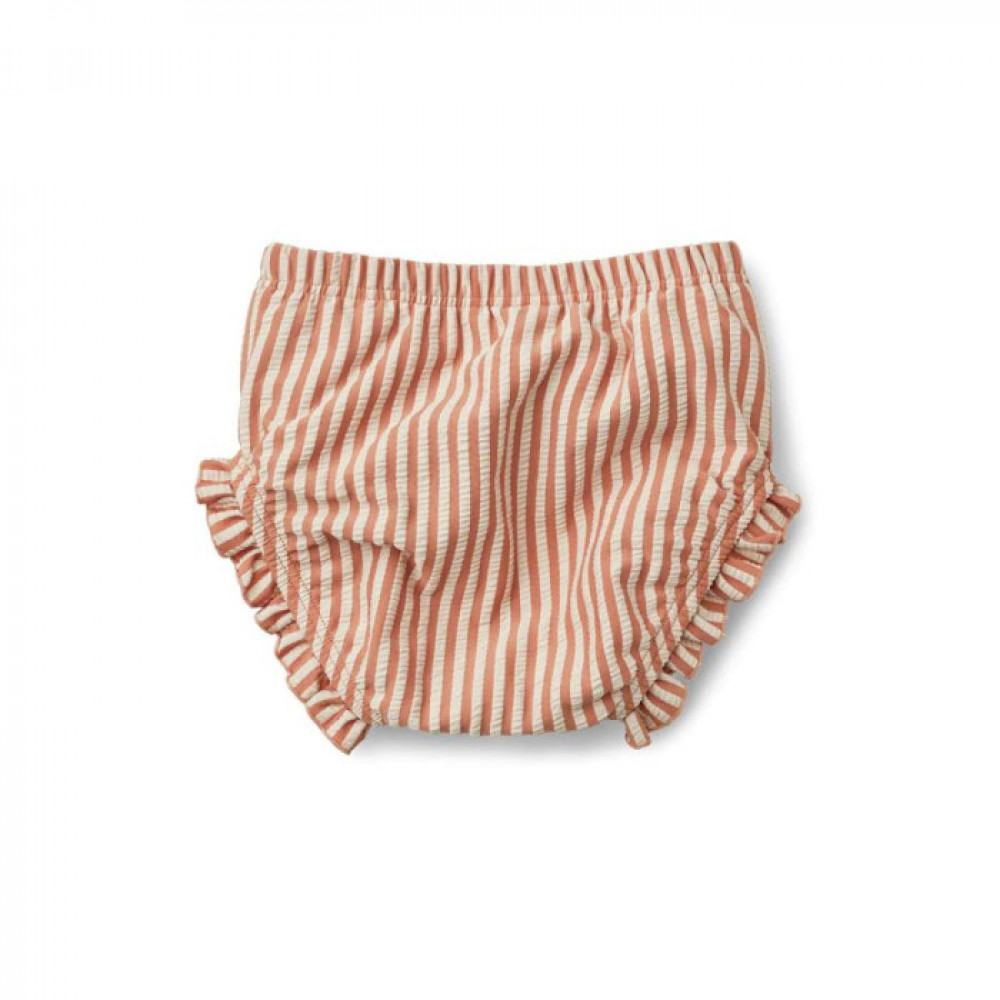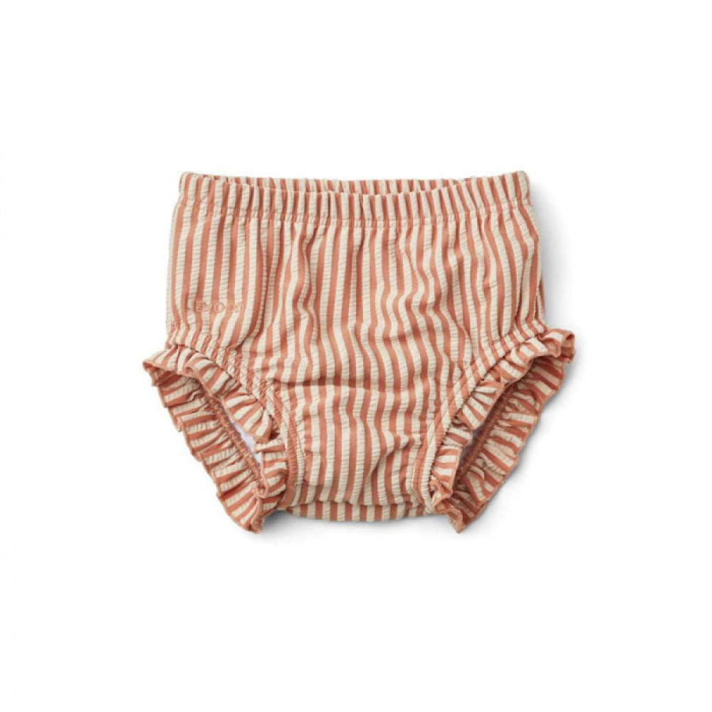 У плавках Mila Baby достатньо місця для підгузника, вони зручно та щільно облягають талію та ноги. Милі деталі з рюшами додають чарівності. Фактор захисту від ультрафіолету 50+ Еластична тканина з місцем для підгузника