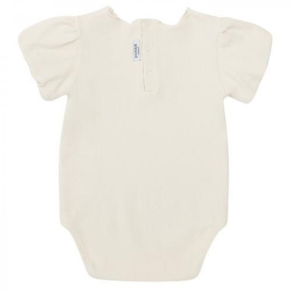 Цей гарний боді з короткими рукавами виконаний у тепло-білому кольорі та має вишиту мордочку кота на грудях. Має круглу горловину, плісировані рукави та тканину, красиво підвернуту всередину на кінцях рукавів, що створює гарний ефект.