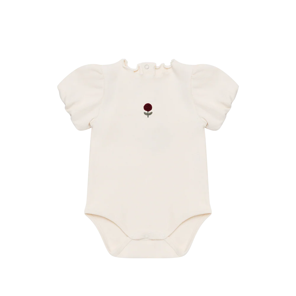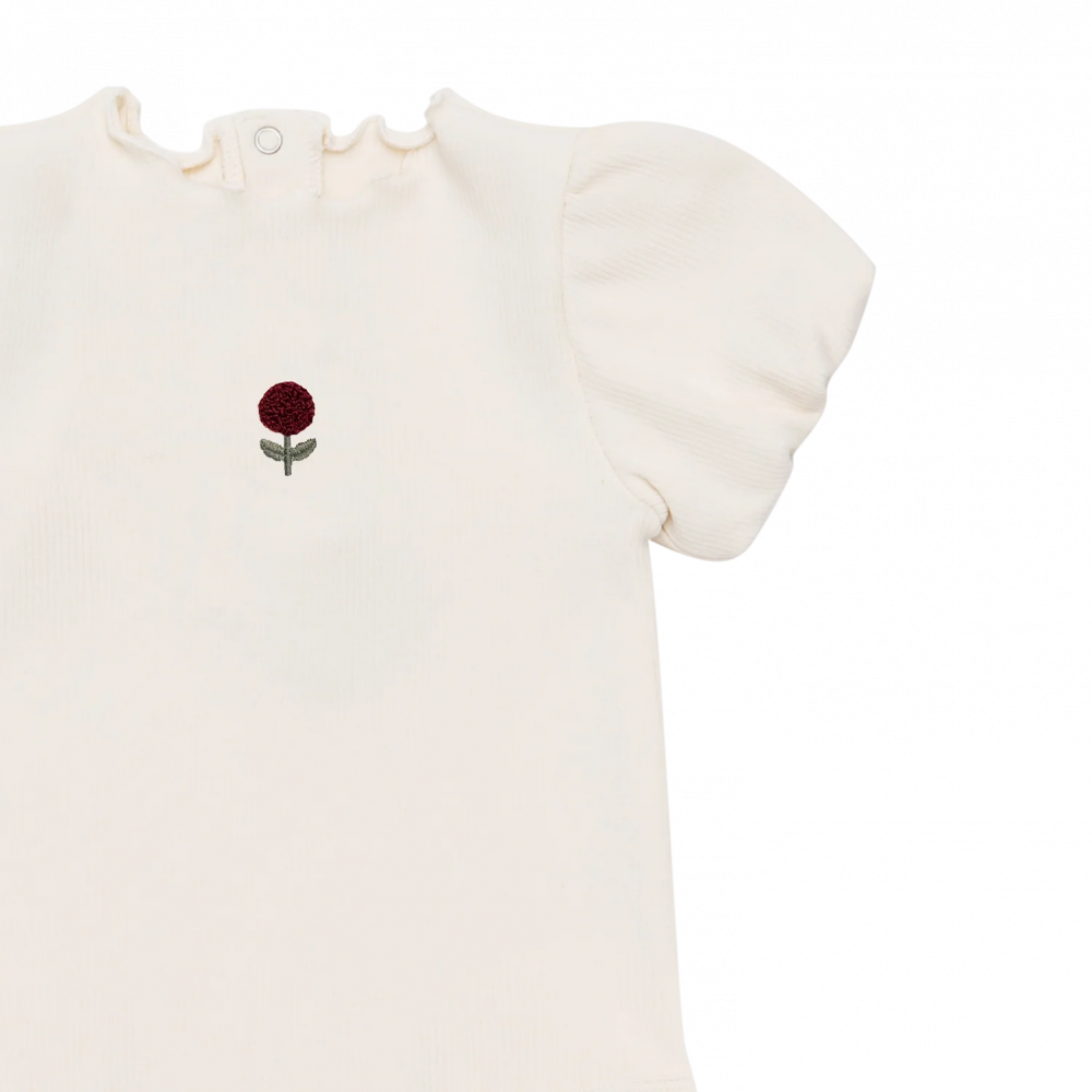 Зупиніться та відчуйте запах троянд! Боді Nowie привнесе ніжну квіткову ніжність у гардероб вашої дитини. Виготовлений з дихаючої тканини, він має фірмову вишивку троянд Donse, рукави-флейтори з еластичними прорізами та класичний вигляд. Завдяки застібкам на кнопках ззаду та в промежині, він такий же практичний, як і цінний — ідеально підходить для ігор та відпочинку в теплу погоду.
