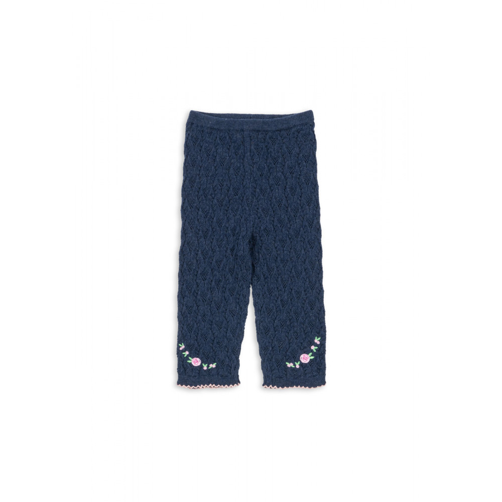 В'язані штани з ніжної трояндової в'язки з вишитими трояндами по низу. Виготовлені з надзвичайно м'якої суміші кашеміру, вовни та бавовни, яка є теплою, але водночас легкою та повітропроникною. Легка в'язана блузка з декоративним візерунком «фестон» та простроченими фестончастими низами. Виготовлена з м'якої суміші бавовни, кашеміру та вовни.