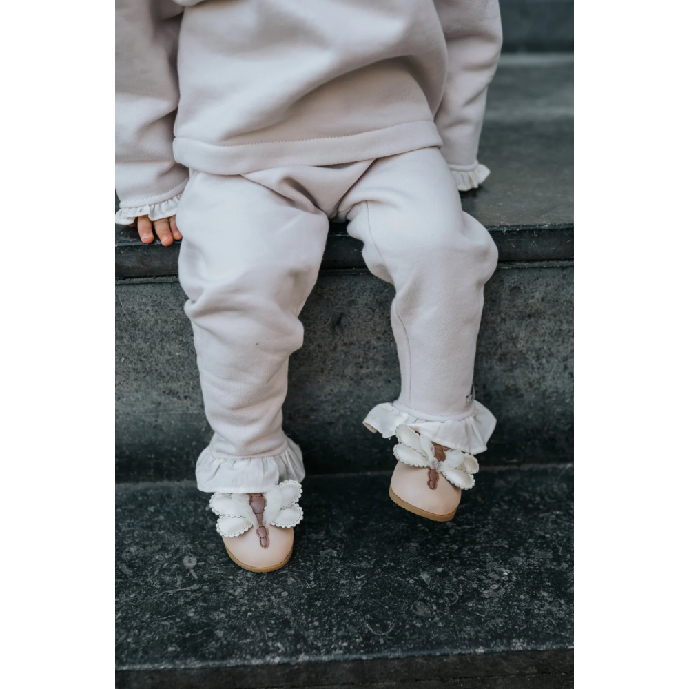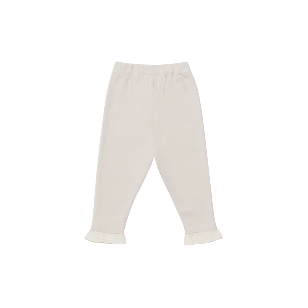 Комфорт зустрічається зі стилем! Зустрічайте невід'ємний елемент міні-гардероба: штани Suzein. Виготовлені з м'якого, щільного матеріалу з еластичним поясом для підвищеного комфорту, ці чарівні штани мають ніжні рюші по краю та вишитий логотип Donsje.