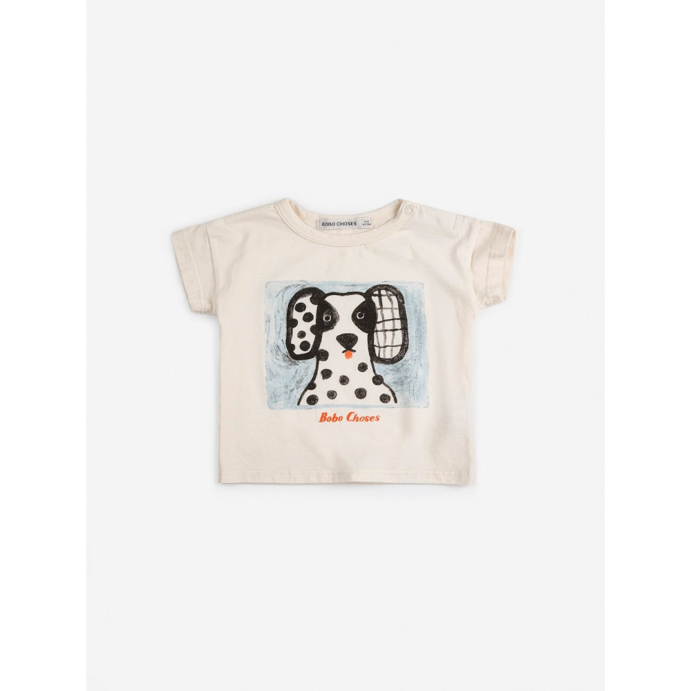 Біла футболка. Короткі рукави, спущені плечі, застібка на кнопках, вільний крій та круглий виріз горловини. Виготовлено в Іспанії.