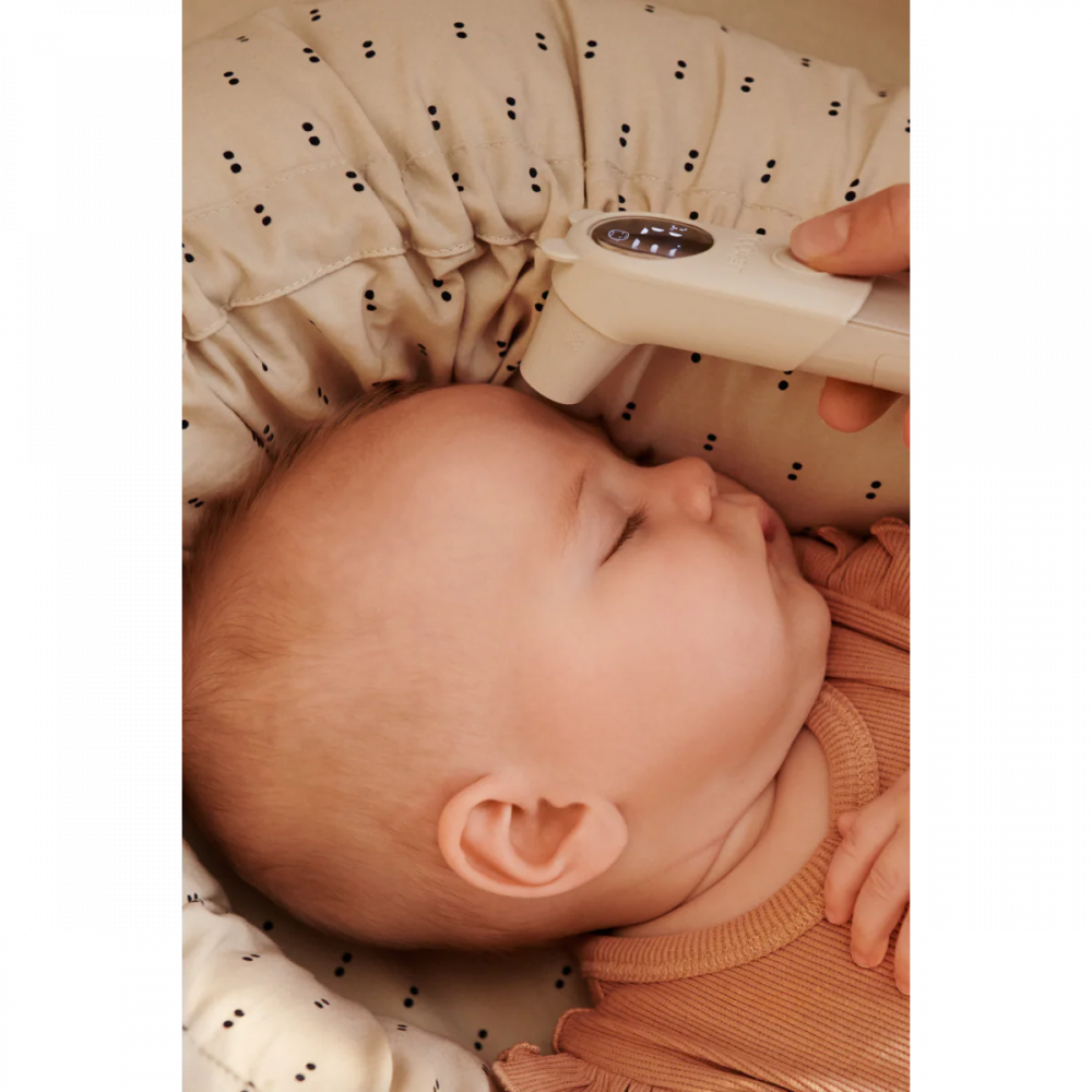 Солодкий інфрачервоний термометр OLIVIER у формі ведмедика забезпечує швидке та точне вимірювання температури. Його можна використовувати для дітей будь-якого віку, а безконтактний сканер дозволяє зчитувати температуру вашої дитини навіть під час сну, або для забезпечення правильної температури пляшечки та води для ванни вашої дитини. Дуже практичний інструмент, який можна використовувати вдома роками. Безконтактний інфрачервоний термометр з деталями солодкого ведмедика Швидка та точна технологія інфрачервоного сканера Використовуйте його для вимірювання температури тіла на лобі або у вусі Також можна використовувати для вимірювання температури об'єктів, наприклад, молока, суміші або води для ванни Може використовуватися для всіх вікових груп, включаючи новонароджених, навіть коли дитина спить Прості у використанні сенсорні кнопки з одним натисканням Звуковий сигнал попередження, коли температура перевищує 37,5°C Потрібні 2 батарейки типу AAA (не входять до комплекту) Практичний універсальний термометр для вашого дому Ширина (см) 4, Довжина (см) 16, Глибина (см) 5
