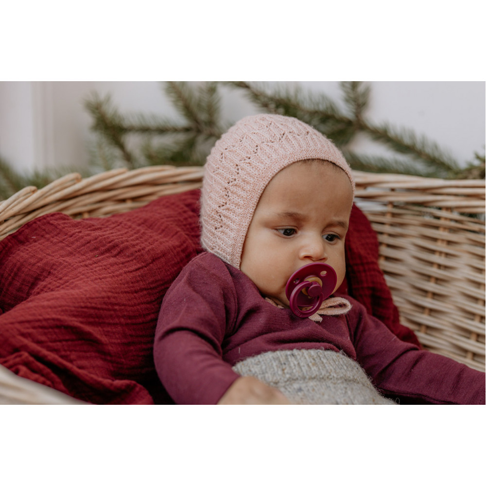 BIBS Colour — це оригінальна пустушка BIBS, яка існує на ринку вже понад 40 років. Анатомічна соска розроблена як ідеальне поєднання круглої та симетричної соски. Кругла зверху для підтримки природного смоктального рефлексу та плоска знизу для зручного розміщення. Техніка смоктання не вимагає такої сили, як, наприклад, кругла пустушки. Пустушка Colour має фірмовий круглий щиток BIBS із трьома вентиляційними отворами та кругле кільце ручки з гравіюванням BIBS. Щиток ретельно розроблений таким чином, щоб закрити чутливу та делікатну шкіру навколо рота дитини, щоб запобігти накопиченню вологи. Щиток поставляється в одному розмірі незалежно від розміру соска.