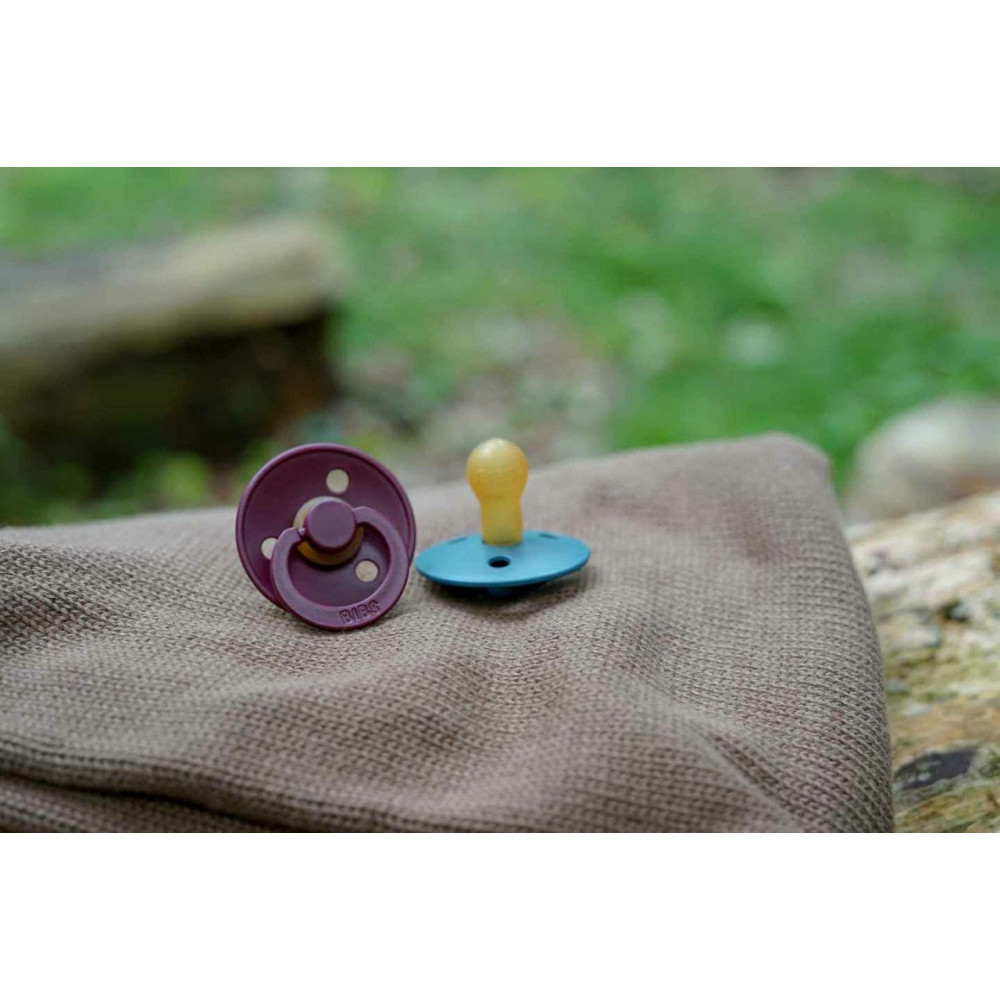 BIBS Colour — це оригінальна пустушка BIBS, яка існує на ринку вже понад 40 років. Анатомічна соска розроблена як ідеальне поєднання круглої та симетричної соски. Кругла зверху для підтримки природного смоктального рефлексу та плоска знизу для зручного розміщення. Техніка смоктання не вимагає такої сили, як, наприклад, кругла пустушки. Пустушка Colour має фірмовий круглий щиток BIBS із трьома вентиляційними отворами та кругле кільце ручки з гравіюванням BIBS. Щиток ретельно розроблений таким чином, щоб закрити чутливу та делікатну шкіру навколо рота дитини, щоб запобігти накопиченню вологи. Щиток поставляється в одному розмірі незалежно від розміру соска.