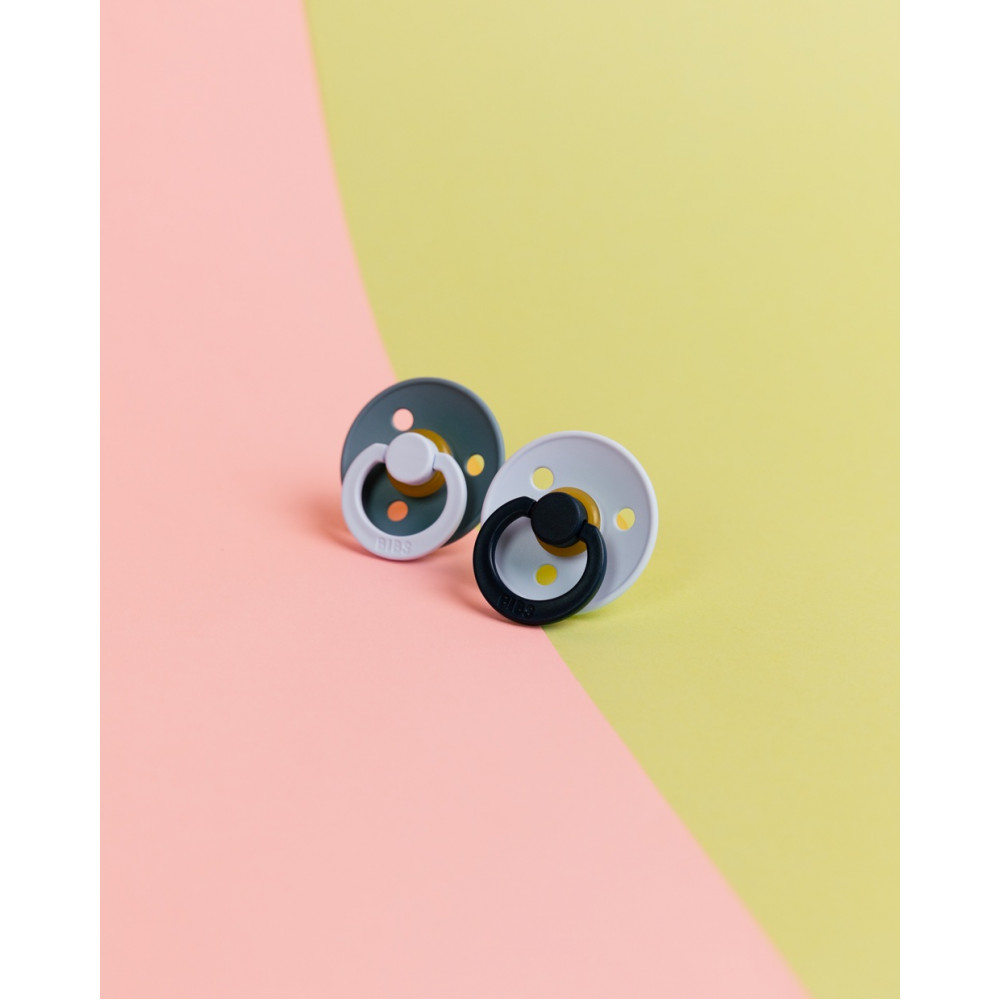 BIBS Colour — це оригінальна пустушка BIBS, яка існує на ринку вже понад 40 років. Анатомічна соска розроблена як ідеальне поєднання круглої та симетричної соски. Кругла зверху для підтримки природного смоктального рефлексу та плоска знизу для зручного розміщення. Техніка смоктання не вимагає такої сили, як, наприклад, кругла пустушки. Пустушка Colour має фірмовий круглий щиток BIBS із трьома вентиляційними отворами та кругле кільце ручки з гравіюванням BIBS. Щиток ретельно розроблений таким чином, щоб закрити чутливу та делікатну шкіру навколо рота дитини, щоб запобігти накопиченню вологи. Щиток поставляється в одному розмірі незалежно від розміру соска. 2 в упаковці