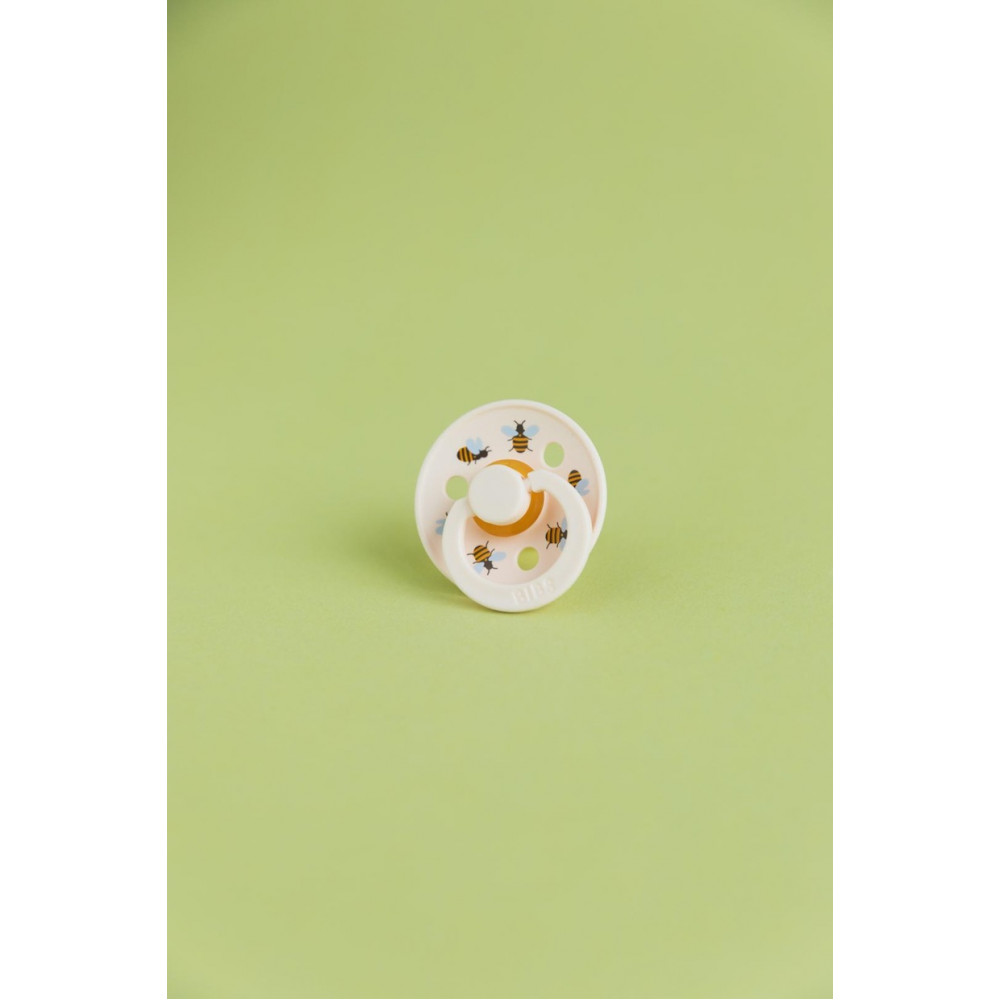 BIBS Colour — це оригінальна пустушка BIBS, яка існує на ринку вже понад 40 років. Анатомічна соска розроблена як ідеальне поєднання круглої та симетричної соски. Кругла зверху для підтримки природного смоктального рефлексу та плоска знизу для зручного розміщення. Техніка смоктання не вимагає такої сили, як, наприклад, кругла пустушки. Пустушка Colour має фірмовий круглий щиток BIBS із трьома вентиляційними отворами та кругле кільце ручки з гравіюванням BIBS. Щиток ретельно розроблений таким чином, щоб закрити чутливу та делікатну шкіру навколо рота дитини, щоб запобігти накопиченню вологи. Щиток поставляється в одному розмірі незалежно від розміру соска.