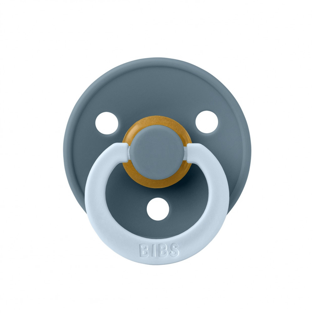 BIBS Colour — це оригінальна пустушка BIBS, яка існує на ринку вже понад 40 років. Анатомічна соска розроблена як ідеальне поєднання круглої та симетричної соски. Кругла зверху для підтримки природного смоктального рефлексу та плоска знизу для зручного розміщення. Техніка смоктання не вимагає такої сили, як, наприклад, кругла пустушки. Пустушка Colour має фірмовий круглий щиток BIBS із трьома вентиляційними отворами та кругле кільце ручки з гравіюванням BIBS. Щиток ретельно розроблений таким чином, щоб закрити чутливу та делікатну шкіру навколо рота дитини, щоб запобігти накопиченню вологи. Щиток поставляється в одному розмірі незалежно від розміру соска.