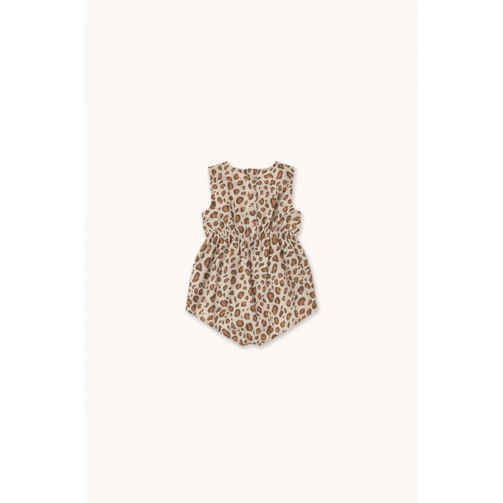Цей короткий боді з тваринним принтом на темно-ванільній основі поєднує в собі веселість та стиль у свіжому, зручному дизайні. Безрукавка з круглим вирізом, застібка на ґудзики ззаду та знизу для легкого одягання та зміни підгузків. Життєвий та практичний предмет першої необхідності для теплих сонячних днів.