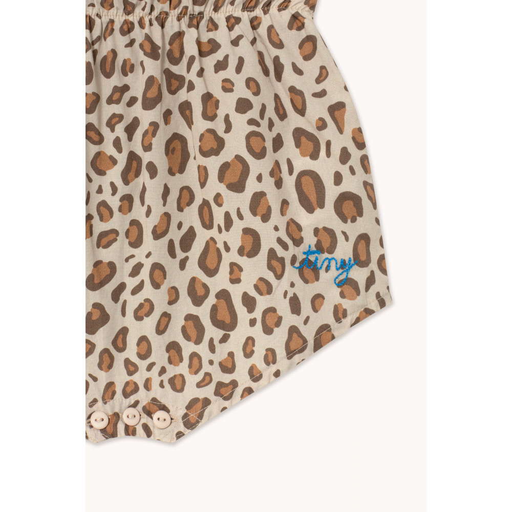 Цей короткий боді з тваринним принтом на темно-ванільній основі поєднує в собі веселість та стиль у свіжому, зручному дизайні. Безрукавка з круглим вирізом, застібка на ґудзики ззаду та знизу для легкого одягання та зміни підгузків. Життєвий та практичний предмет першої необхідності для теплих сонячних днів.