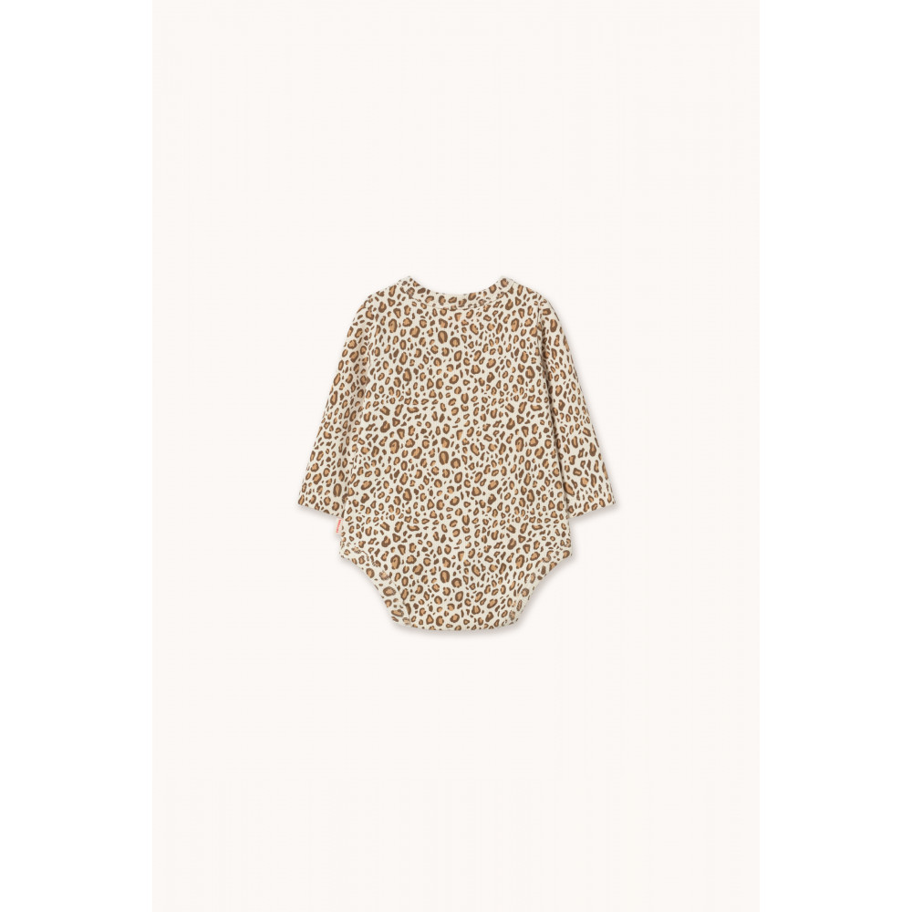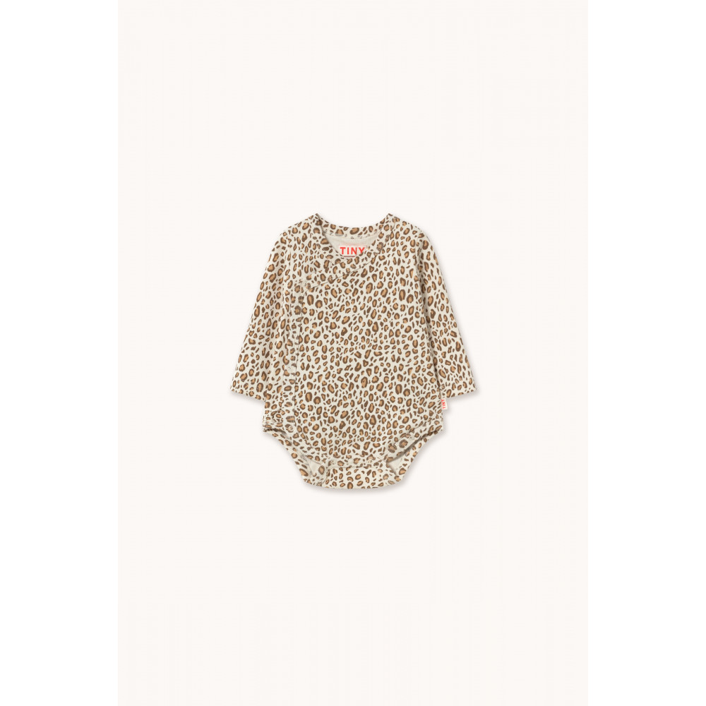 Цей боді з анімалістичним принтом у ребристу тканину виготовлений з м’якої суміші органічної бавовни, що забезпечує повітропроникність. Він має зручний, вільний силует з короткими рукавами та кнопками для легкого одягання.