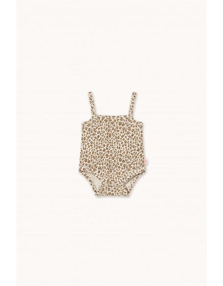 Цей боді з анімалістичним принтом у ребристу тканину виготовлений з м'якої бавовняної суміші, яка дихає. Він має зручний, вільний силует з бретелями та застібкою на кнопці знизу.
