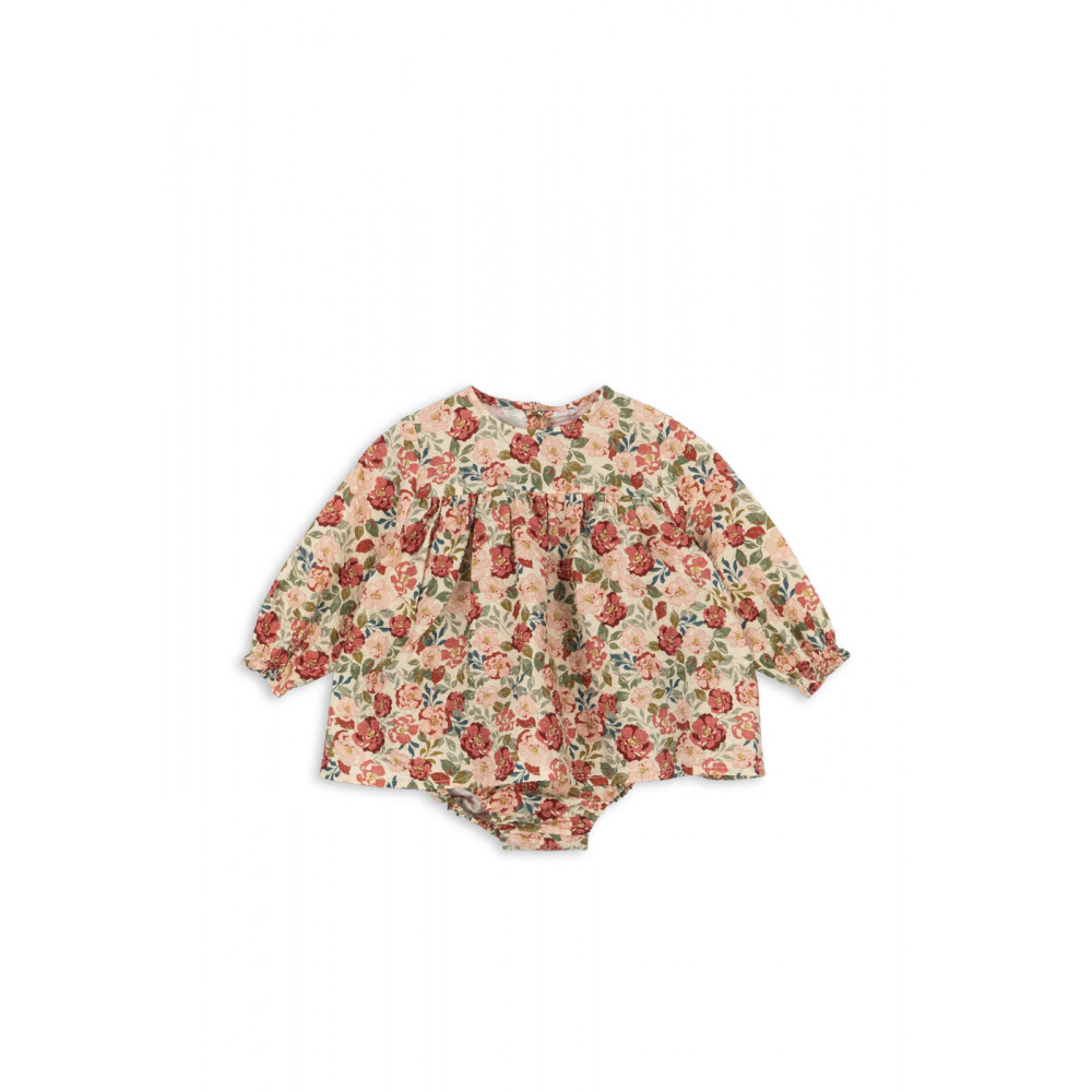 М'який ромпер з довгими рукавами, виготовлений зі 100% органічної бавовни. Розроблений із застібкою на ґудзиках на горловині та кнопками на паху для легкого одягання.