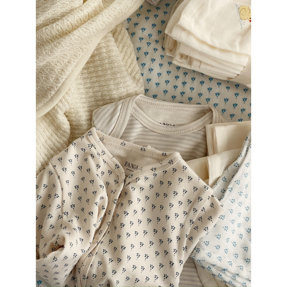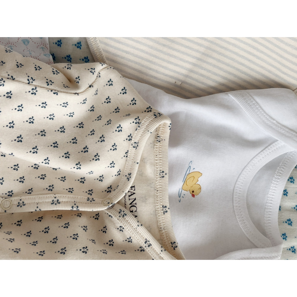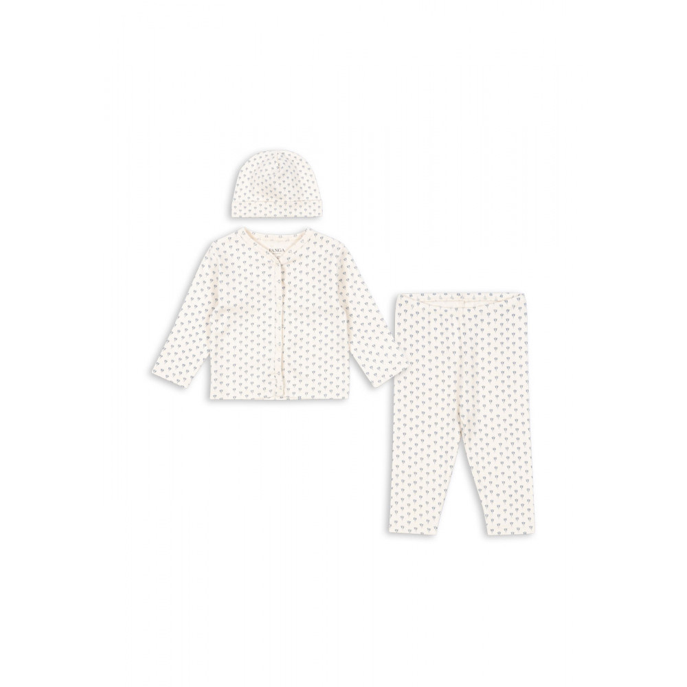 М'який комплект для новонароджених, що включає пару штанів з органічної бавовни, м'який топ, який повністю відкривається спереду на кнопках, та маленьку шапочку, яка зігріє малюків. Ці базові речі виготовлені з суміші органічної бавовни та модалу з еластаном для додаткової міцності та еластичності. Модал — це м'яке та дихаюче волокно, ніжне та м'яке як для нічного, так і для щоденного носіння.