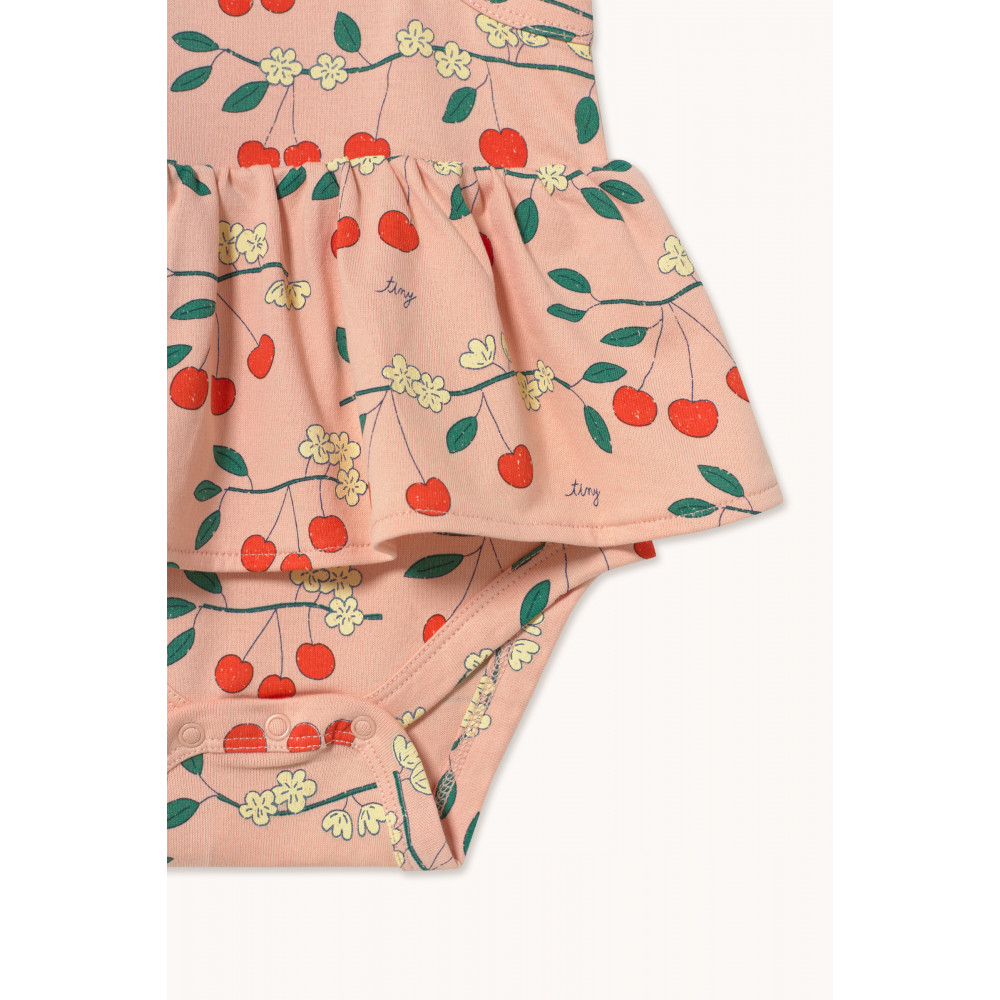 Виготовлений зі 100% органічної бавовни, цей боді з принтом «Вишневі дерева» поєднує в собі комфорт, стиль та екологічність. Він має зручний, розслаблений силует із широкими бретелями та застібкою на кнопки знизу.