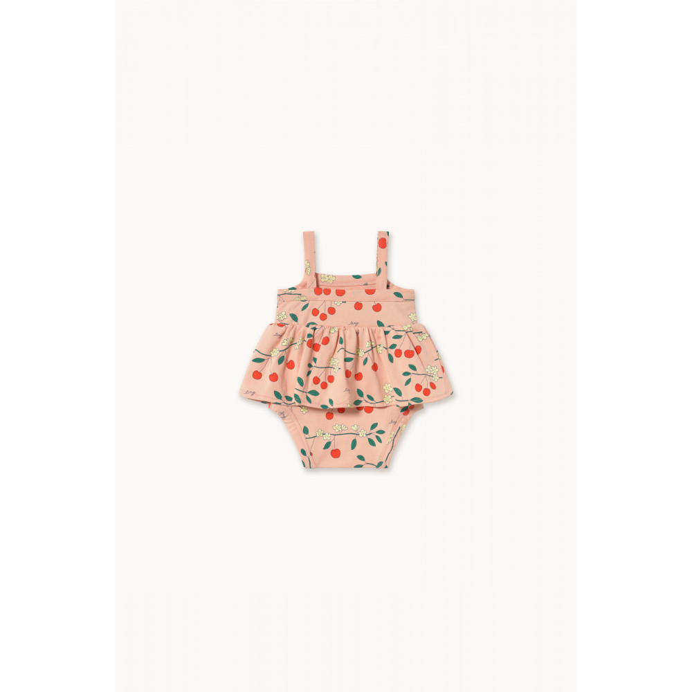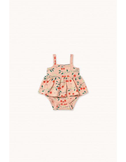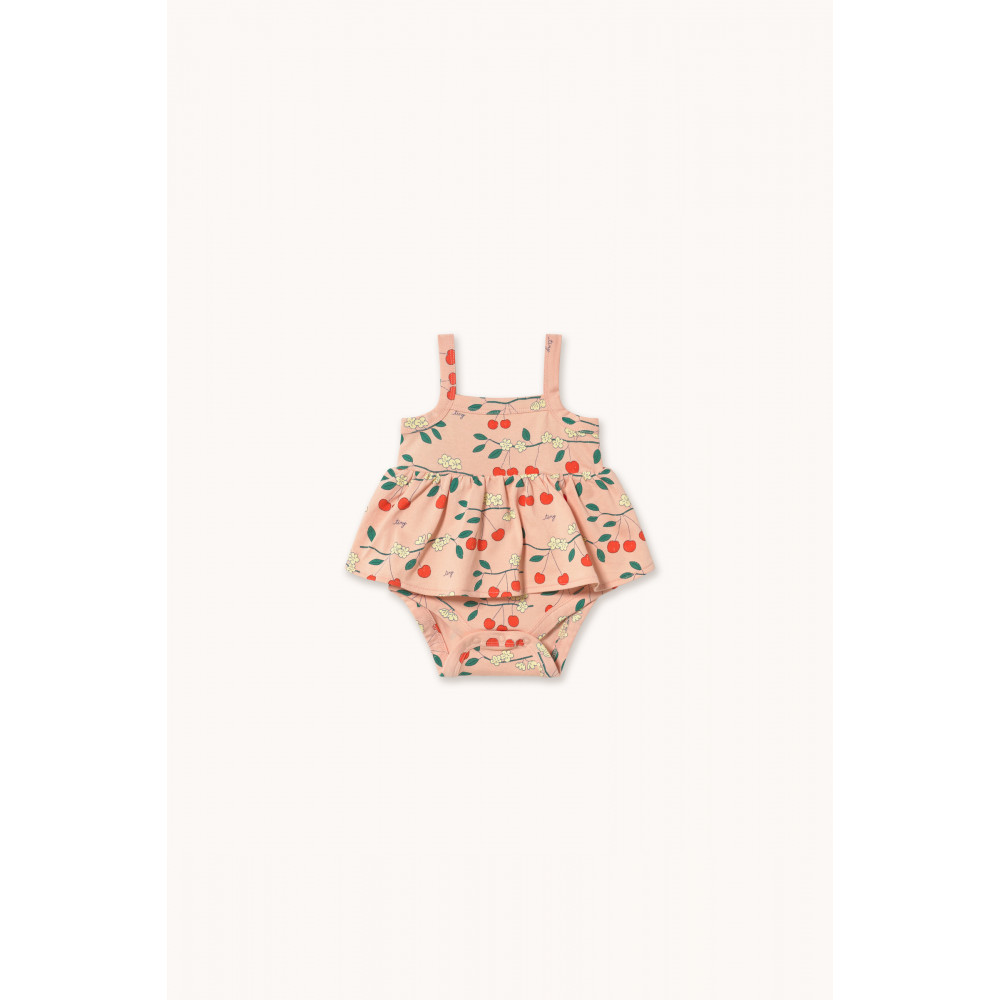Виготовлений зі 100% органічної бавовни, цей боді з принтом «Вишневі дерева» поєднує в собі комфорт, стиль та екологічність. Він має зручний, розслаблений силует із широкими бретелями та застібкою на кнопки знизу.