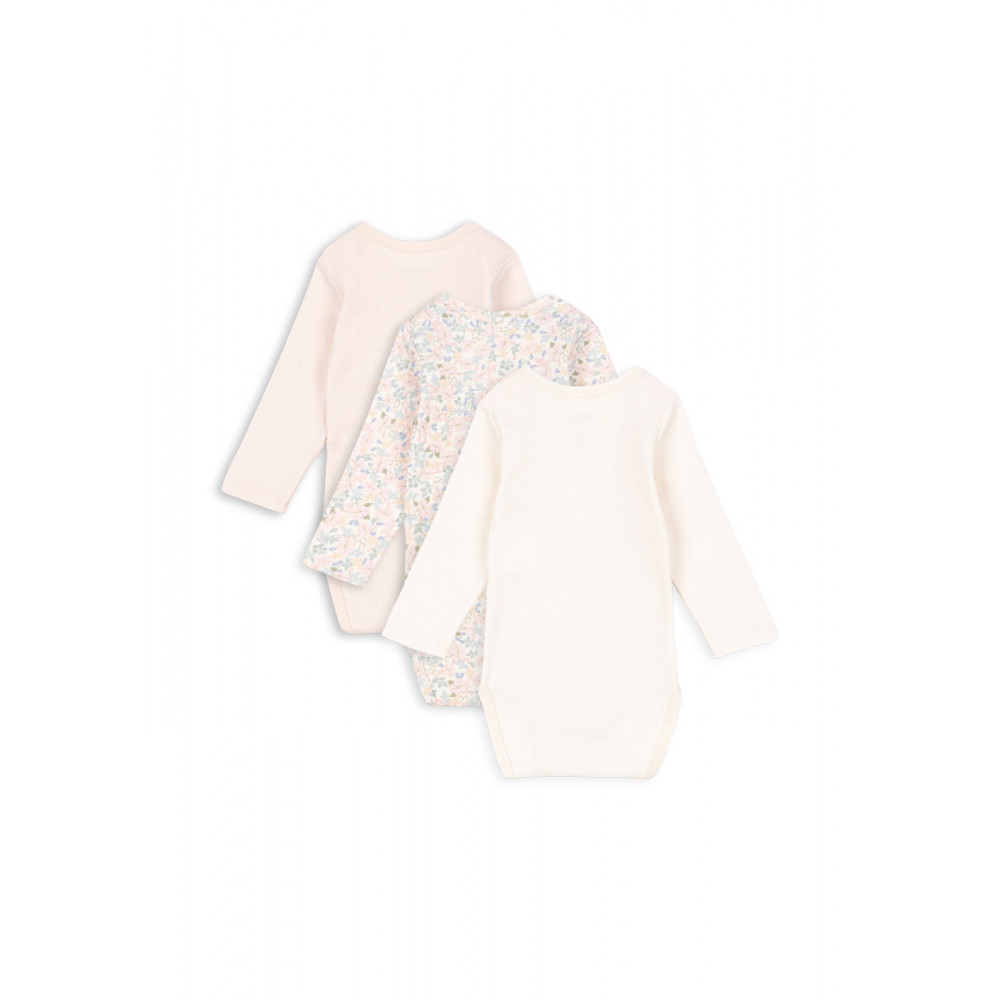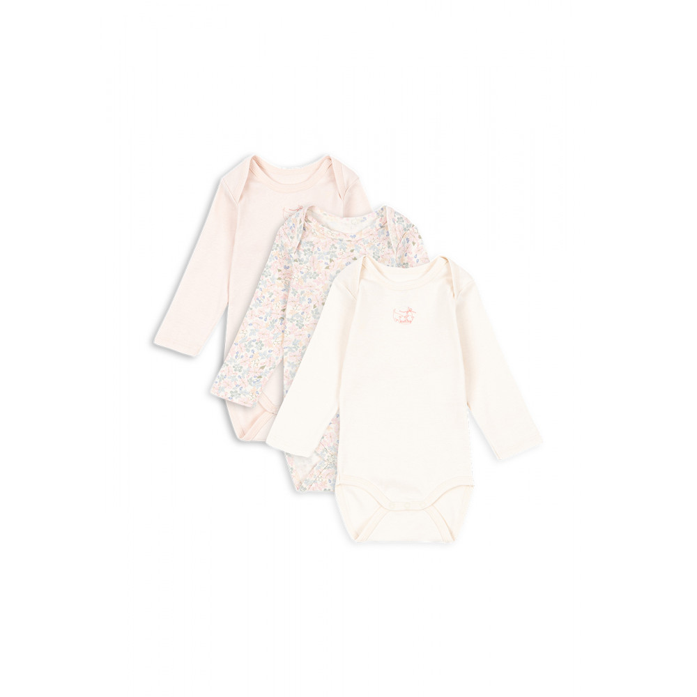 Набір із 3 м’яких боді з органічної бавовни з довгими рукавами. Виготовлені з гнучкої ребристої тканини, мають зручний візерунок «конверт» для легкого одягання та знімання, а також зручні кнопки між ніжками для зміни підгузків.