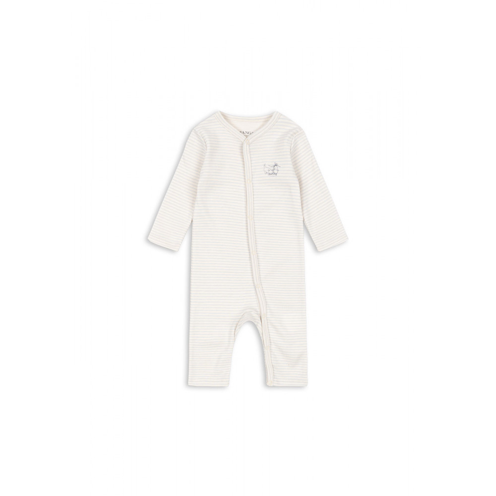 М'який комбінезон з органічної бавовни для новонароджених. Розроблений із повністю застібкою на ґудзики спереду та вздовж штанини, що дозволяє легко та зручно переодягати дитину. Виготовлений зі 100% органічної бавовни з гнучкою ребристою тканиною.