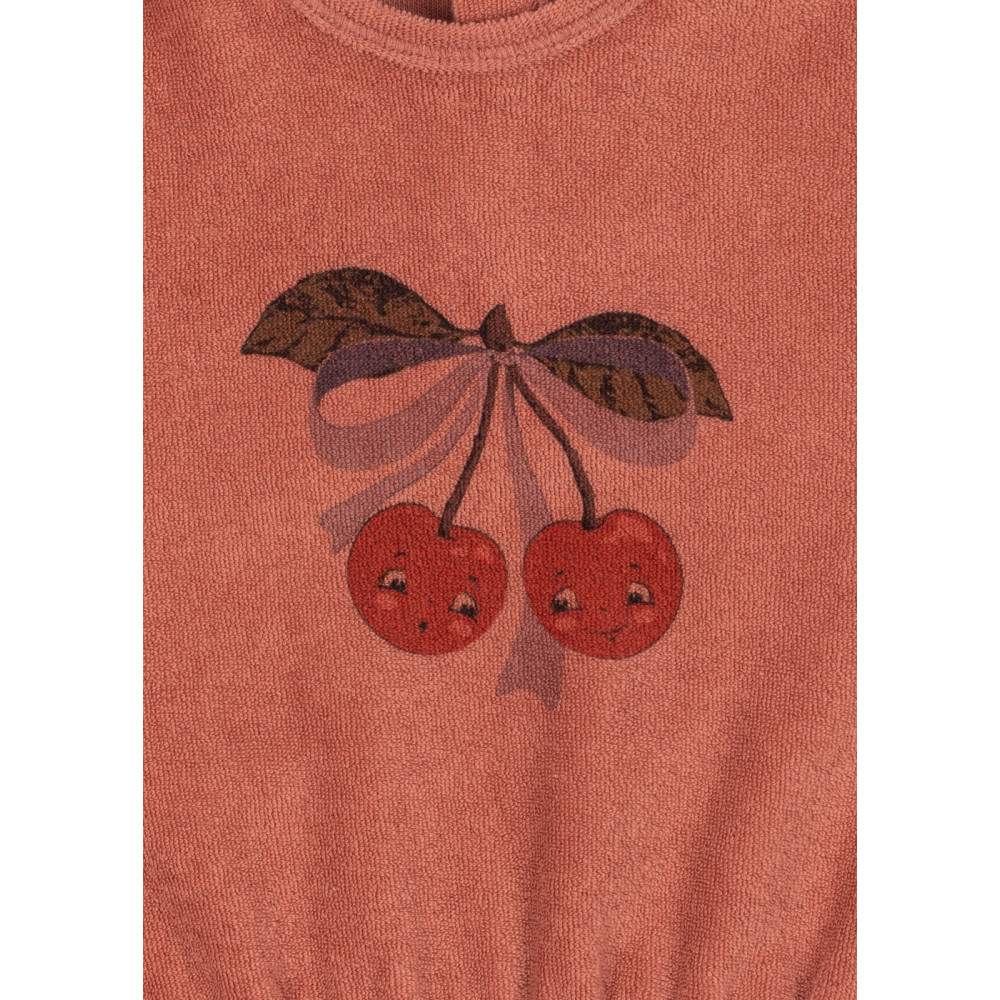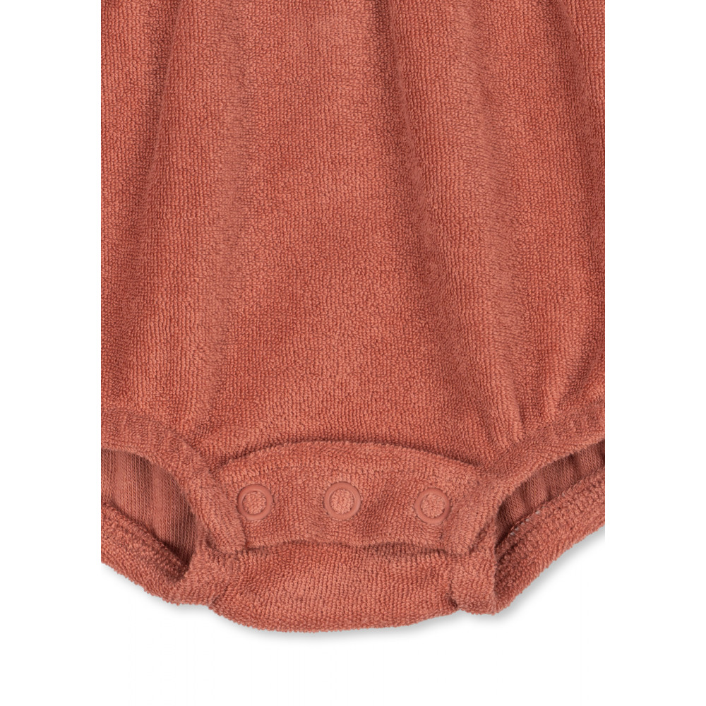 Ромпер з м'якої махрової тканини. Розроблений із застібками на кнопках на штанинах для легкого одягання, а також зручними гумками навколо отворів для комфортної посадки.