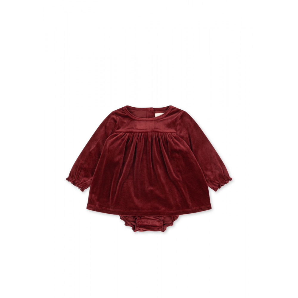 Святкова сукня-ромпер з м'якого оксамиту. Розроблена з ґудзиками на штанині для легкого одягання. Цей виріб містить щонайменше 80% поліестеру, сертифікованого GRS, згідно з CU 1094701.