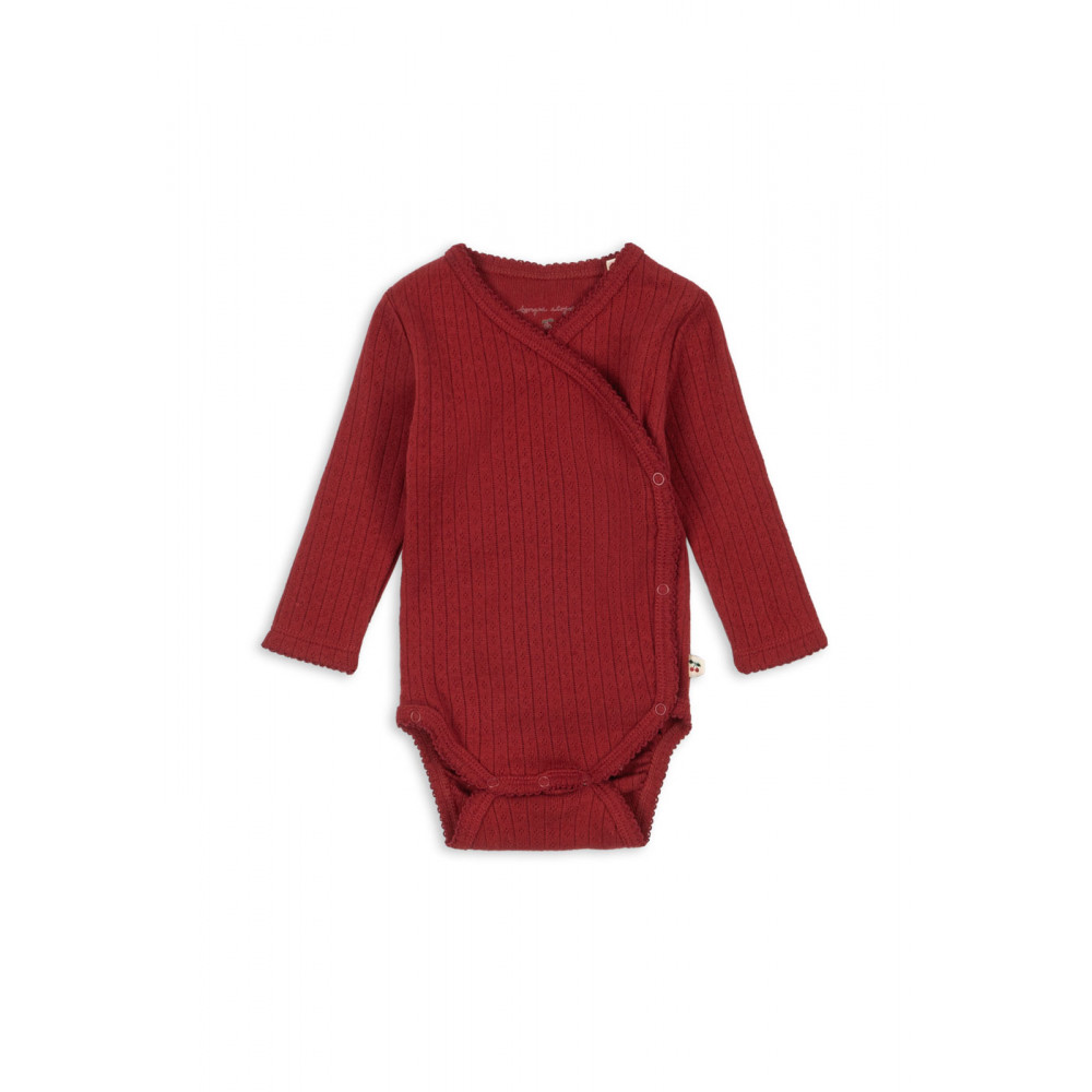М'який боді з декоративними пуантами та легкою застібкою-обгорткою. Застібки на кнопки збоку боді та в промежині для легкого одягання. Minnie - це наша лінійка класичних базових речей, виготовлених з м'якої органічної бавовни. Ці речі першої необхідності призначені для носіння як вдень, так і вночі як комфортний шар, щільно прилягаючий до шкіри.