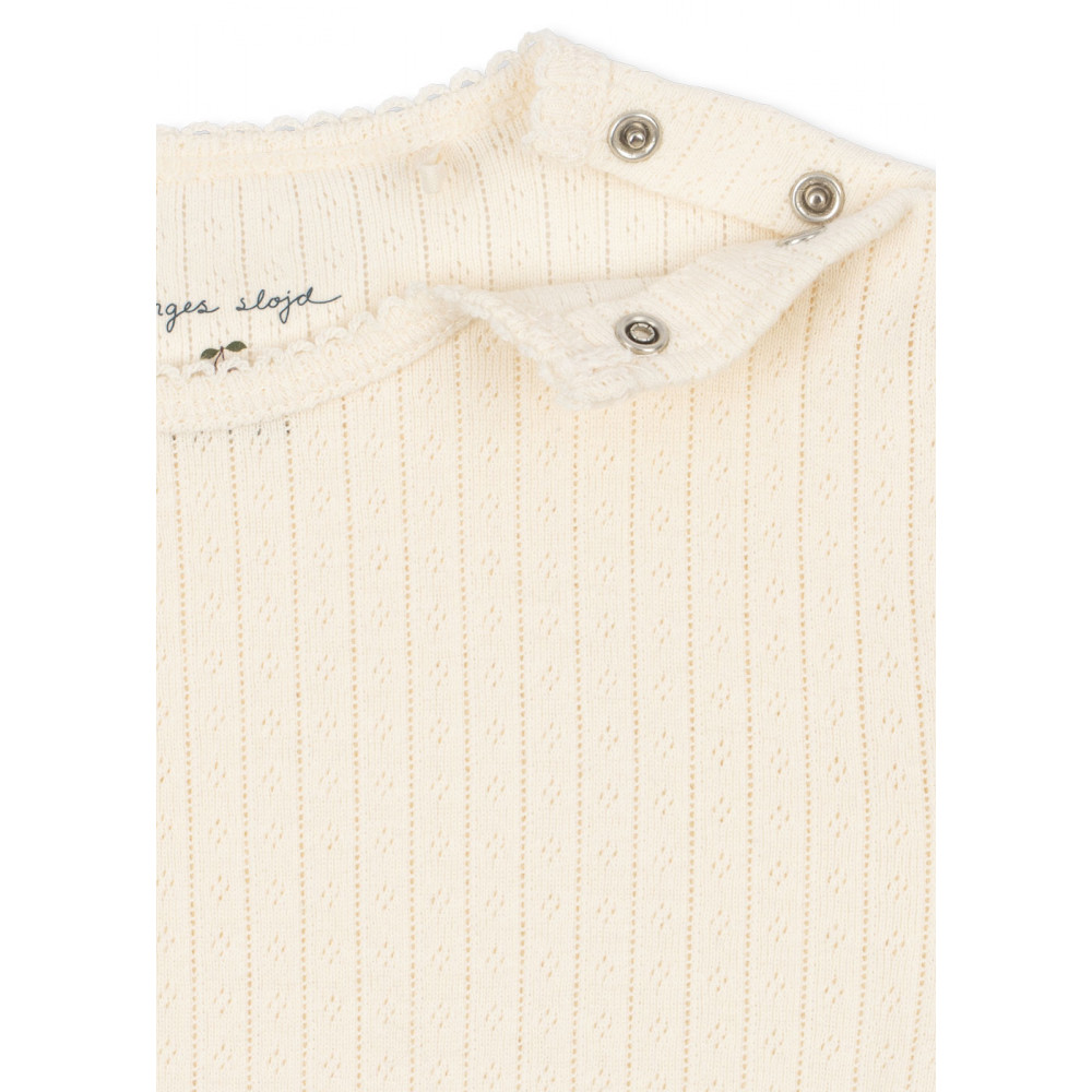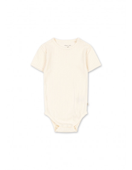 М'який боді з короткими рукавами. Виготовлений зі 100% органічної бавовни пуантель з декоративними краями піко. Розроблений з кнопками на промежині та плечах для легкого одягання та зміни підгузка.