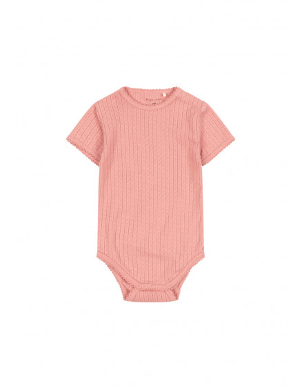 М'який боді з короткими рукавами. Виготовлений зі 100% органічної бавовни пуантель з декоративними краями піко. Розроблений з кнопками на промежині та плечах для легкого одягання та зміни підгузка.
