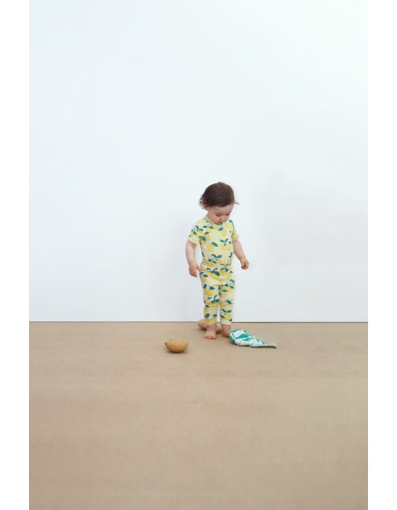 Цей боді з принтом "Оранжеві апельсини" виготовлений з м'якої бавовняної суміші, яка дихає. Він має зручний, вільний силует з короткими рукавами та застібкою на кнопці знизу.