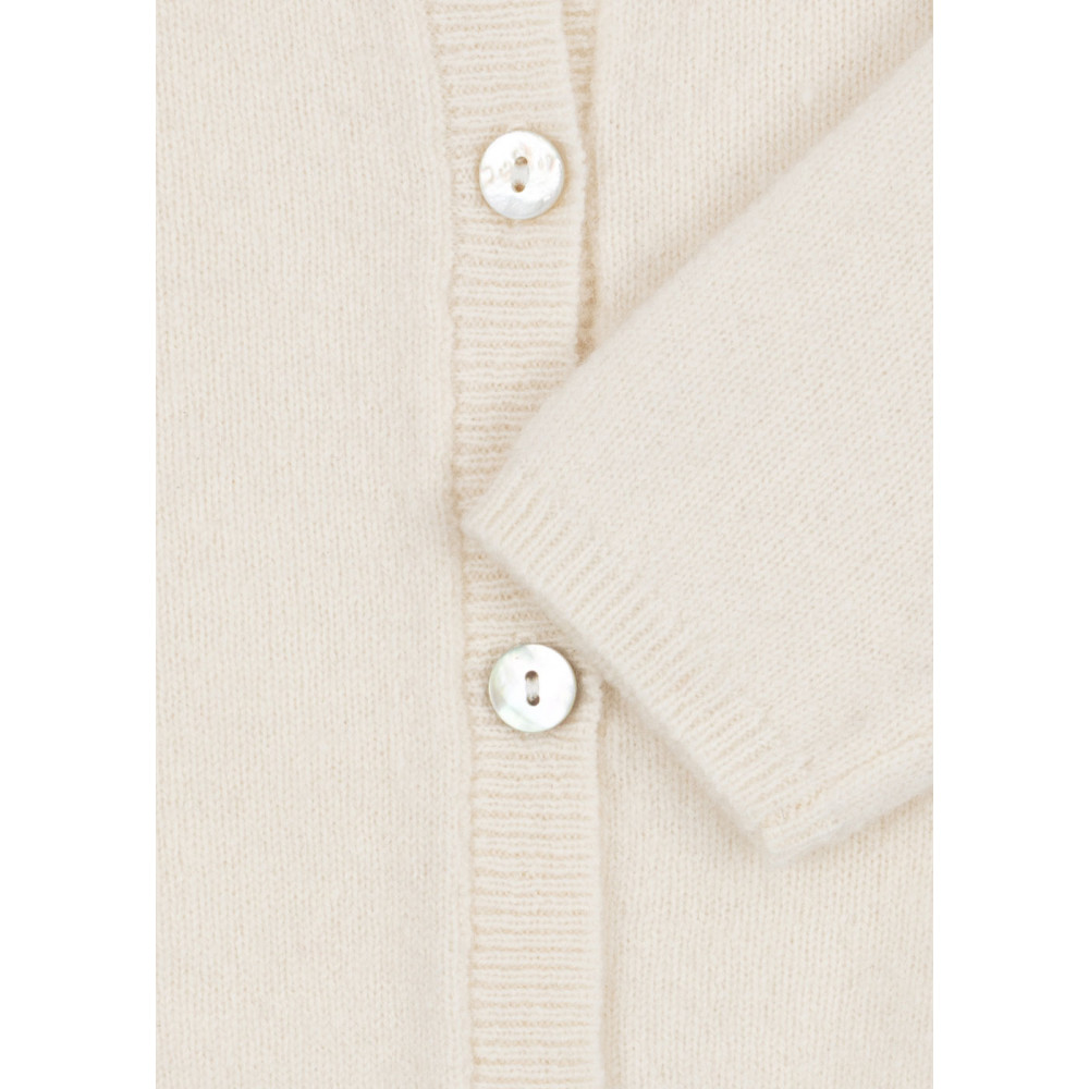 Надзвичайно м'який та зручний вовняний кардиган з перламутровими ґудзиками спереду, декоративними ребристими краями та рукавами реглан. Ідеальний шар одягу, щоб вашій дитині завжди було тепло та комфортно.