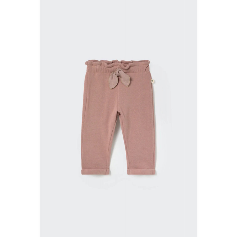 Ці дитячі штани виготовлені з м’якого, як масло, трикотажу, прочесаного зсередини та зовні для приємного теплого вигляду, який зігріває малюків. Еластичний пояс оздоблений рюшами та декоративним бантом спереду. Загорнуті низи доповнюють затишний дизайн, що робить їх ідеальним повсякденним предметом першої необхідності для прохолодної погоди. Надзвичайно м’який трикотаж з плюшевим відчуттям. Прочесаний зсередини та зовні для повного тепла. Гладкий фініш, ніжний для чутливої шкіри. Легкі, але приємні на дотик — ідеально підходять для носіння шарами.