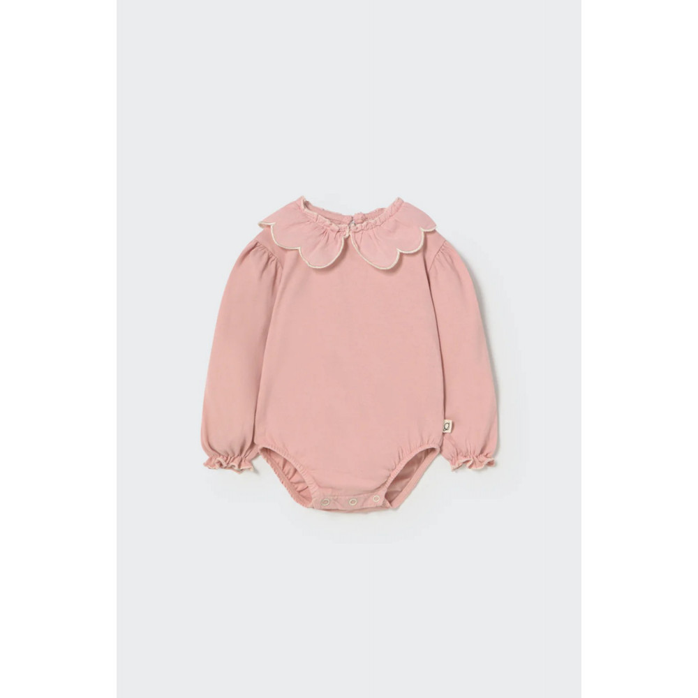 Боді з органічного бавовняного трикотажу з матовою обробкою для додаткового тепла та м'якості. Має бавовняний вуальовий комір з воланами та обробкою з салатового краю та манжети з рюшами в тон салатового краю. Еластичні отвори для штанин та застібки на кнопках на ластовці забезпечують легке одягання. Краплеподібний отвір ззаду для додаткового комфорту. Розроблено для затишку та комфорту новонароджених, немовлят та малюків. Виготовлено з органічної бавовни, вирощеної екологічно та етично. Матова обробка забезпечує неймовірно м'який та затишний шар. Тепло без об'єму — ідеально підходить для нашарування. Дбайливий до шкіри та планети. Екологічний вибір для гардеробу вашої дитини.