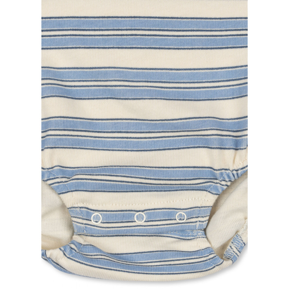 М'який ромпер з органічної бавовни в класичному дизайні поло. Має звичайний комір, планку на ґудзиках та застібку на ґудзики на штанинах для легкого одягання.