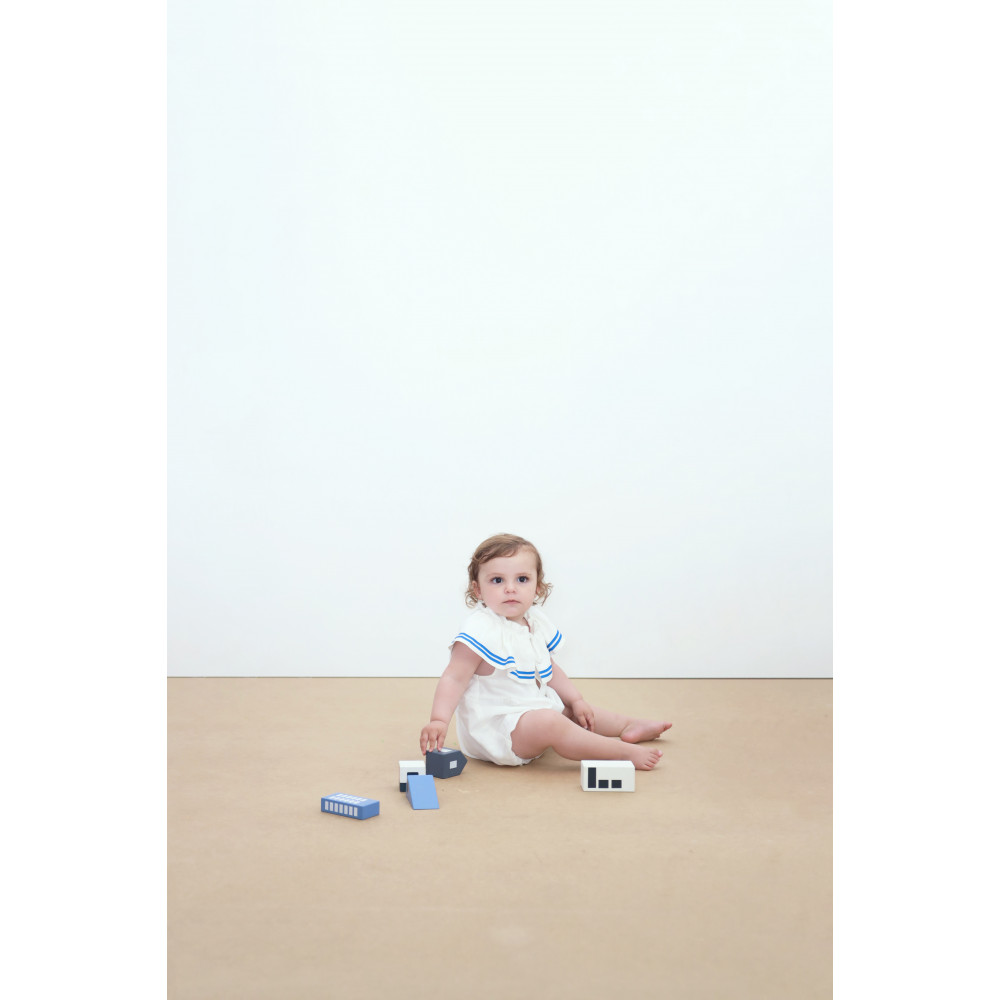 Цей смугастий боді поєднує в собі комфорт, стиль та практичність для малюків. Виготовлений з м'якої, дихаючої бавовняної суміші, він має круглий виріз горловини з переднім отвіром для легкого одягання. Декоративний штучний бант на ґудзику додає чарівності, а застібка знизу дозволяє швидко та комфортно міняти підгузки. Його вільний, зручний крій забезпечує повну свободу рухів, що робить його ідеальним для щоденного носіння.