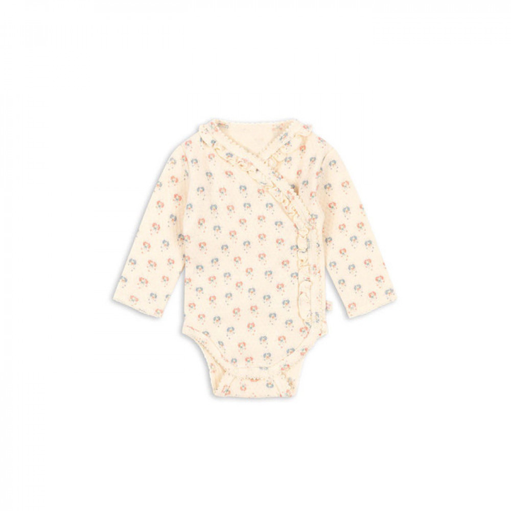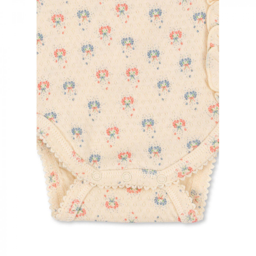 Боді з м’якої перфарованої бавовни. Розроблений із застібками з боків і отворів для ніжок для зручного одягання.