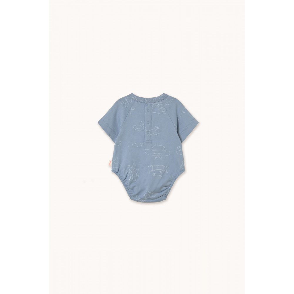 Цей боді в стилі Tiny Giverny виготовлений зі 100% органічної бавовни для м'якості та повітропроникності. Він має зручний, вільний силует з короткими рукавами та застібкою на кнопці знизу.