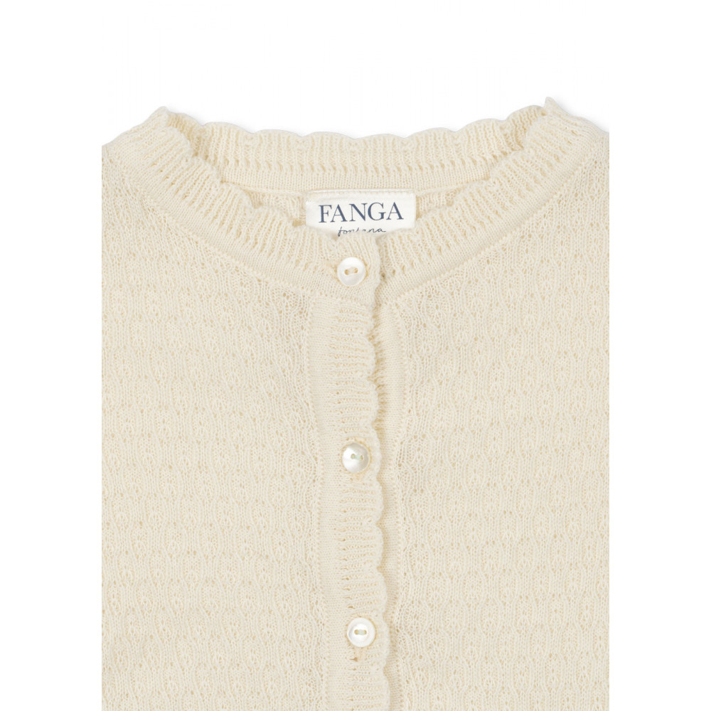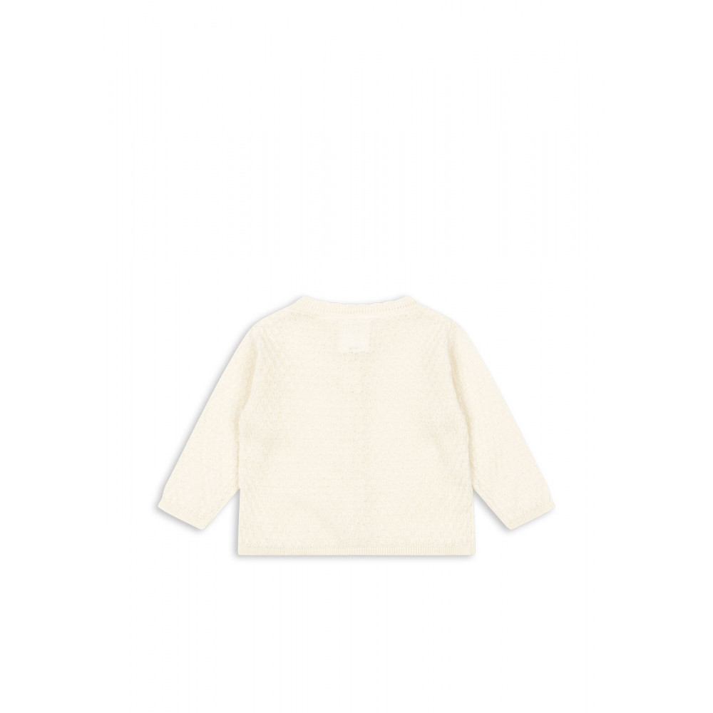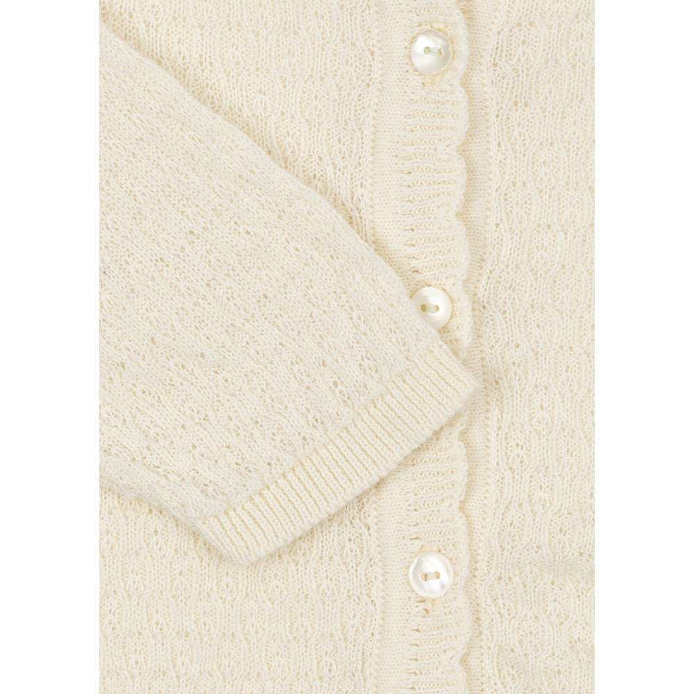 Легкий кардиган з ніжним візерунком пуантель. Виготовлений зі 100% органічної бавовни, яка є м'якою та повітропроникною, з фестончастими краями та перламутровими ґудзиками спереду.