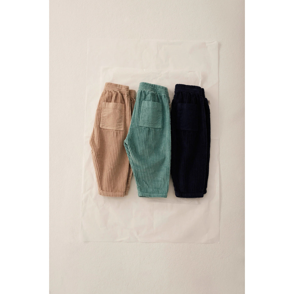 Надзвичайно м’які та затишні широкі вельветові штани з органічної бавовни, сертифікованої OCS та OEKO-TEX. Мають еластичний пояс, імітацію ширинки та накладну кишеню ззаду з контрастної вельветової тканини. Ніжні на дотик та приємно щільні — ідеально підходять для немовлят. Виготовлені з органічної бавовни, сертифікованої за стандартом органічного вмісту (OCS), та GOTS. Забезпечують натуральну ізоляцію, щоб дитина була в теплі та затишку. Ніжна текстура, ідеально підходить для чутливої шкіри. Структурована, але гнучка для щільного та комфортного прилягання. Дбайливі до шкіри та планети. Екологічний вибір для гардеробу вашої дитини.