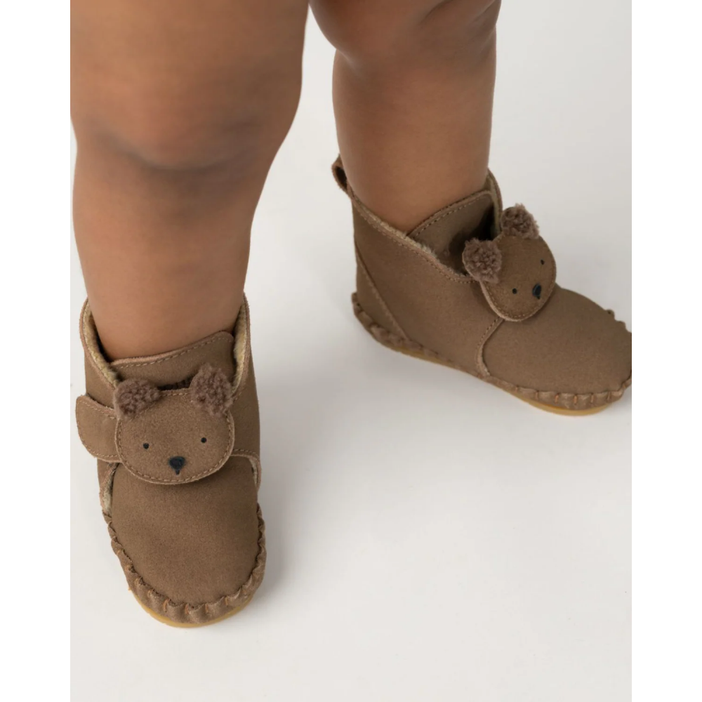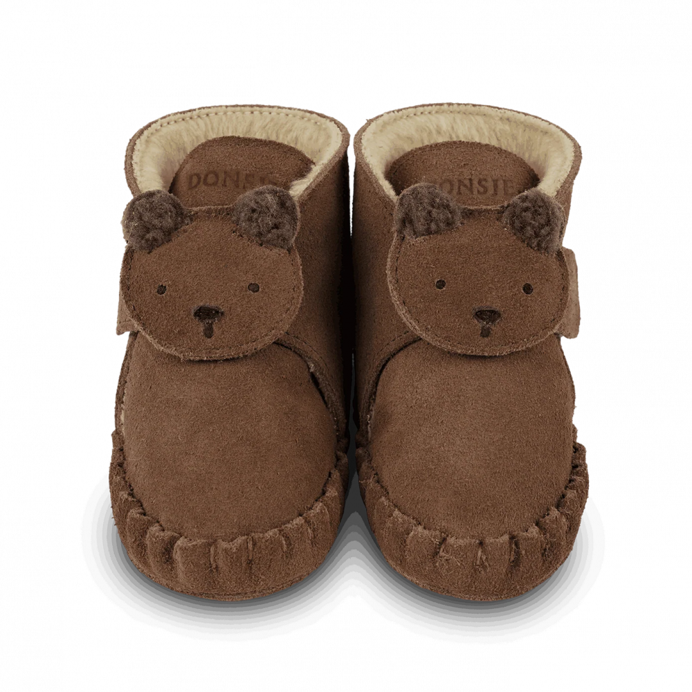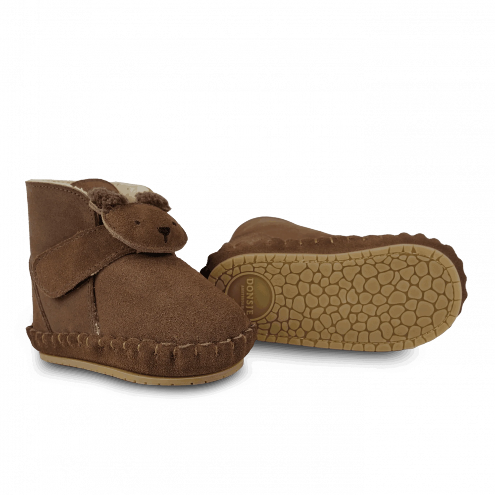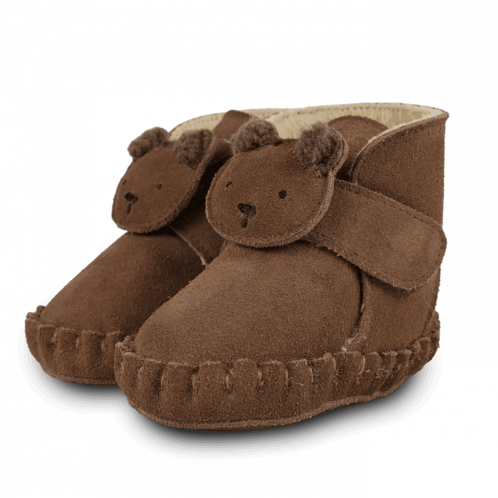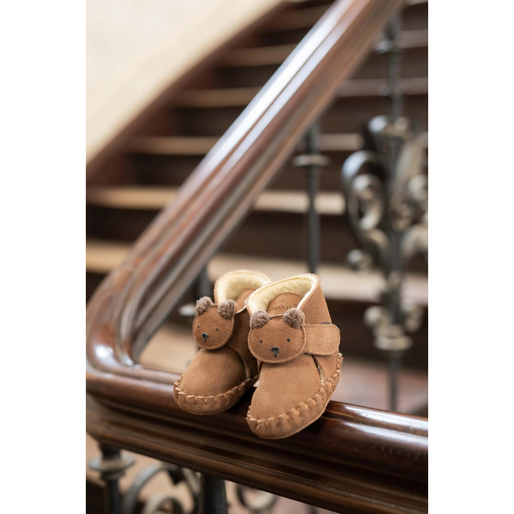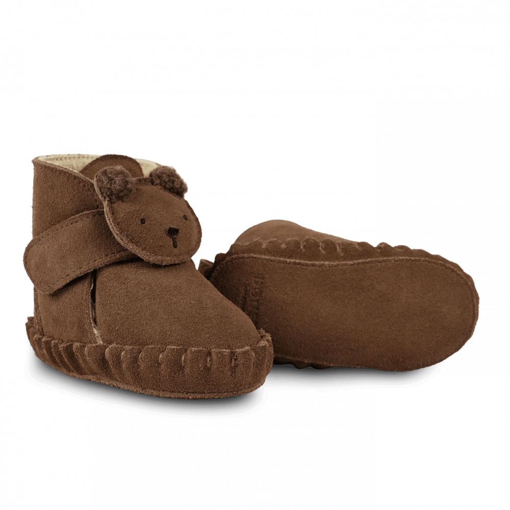 Ведмежа захопливість! Черевики Pouty – ідеальний вибір для міжсезоння, підтримуючи довгоочікувані перші кроки. Ретельно виготовлені зі 100% високоякісної замші, черевики мають прості у використанні застібки на липучках та чарівного ведмедика Donsje з пухнастими вушками.